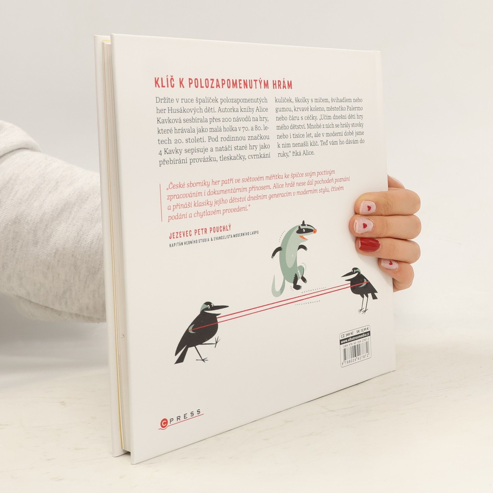 Sběratelka retroher Alice Kavková posbírala více než dvě stovky návodů na hry, které mnozí jako malí hráli, ale málokdo je předal dalším generacím. Třeba skákání gumy, přebírání provázku nebo tleskačky. V knize nejdete také povídání s dětskou psycholožkou a logopedkou o významu her a hraní pro vývoj dítěte a vše je doplněné kouzelnými ilustracemi Lukáše Fibricha. Retrohraní je zkrátka pokladnice her Husákových dětí.