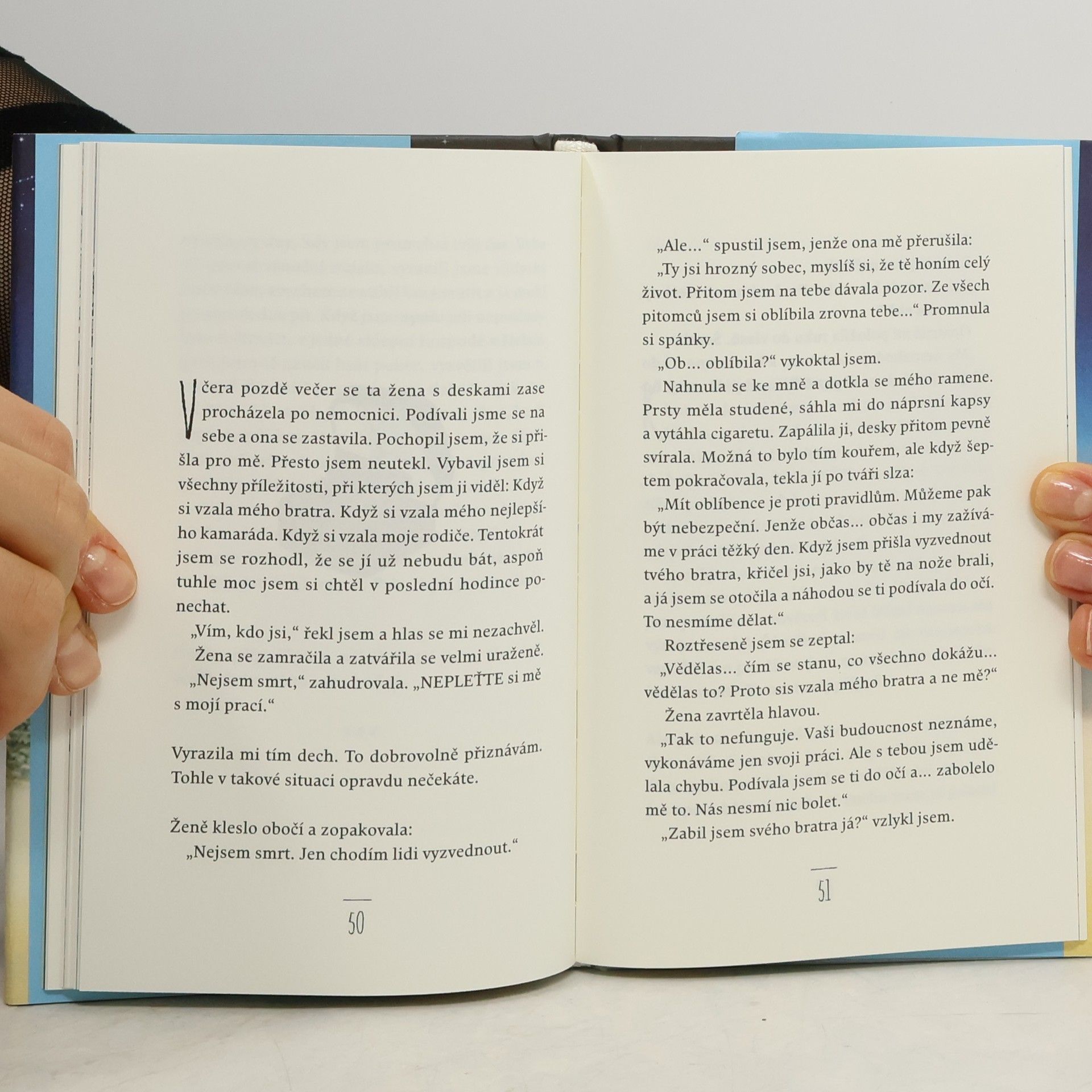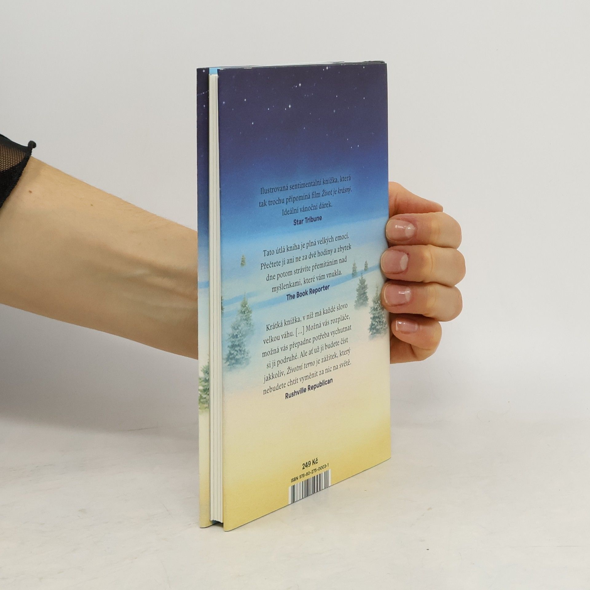 Je noc před Štědrým dnem a nemocniční chodbou kráčí žena v šedém, aby si odvedla jednoho z nás. Má s sebou desky se jmény nás všech: pětileté holčičky trpící rakovinou, která maluje svou oblíbenou židličku na červeno, dvacetiletého mladíka leštícího pivní sklenici v milované hospodě, pětačtyřicetiletého muže, který uhání tmou v drahém autě a hledá, do čeho by narazil. Někdo z nás dnes přijde o život, pokud se někdo jiný dobrovolně nevzdá toho svého. Ale nestačí pouze zemřít, protože život není jen to, co právě končí. Život je všechno to, co se stalo předtím. Fredrik Backman umí mistrně vylíčit lidské pochyby a vnitřní démony, aniž ztrácí smysl pro humor. Toto vyprávění je mnohem smutnější než třeba Dickensova Vánoční koleda, ale i zde najdeme naději a možnost všechno napravit — i když za velmi vysokou cenu.