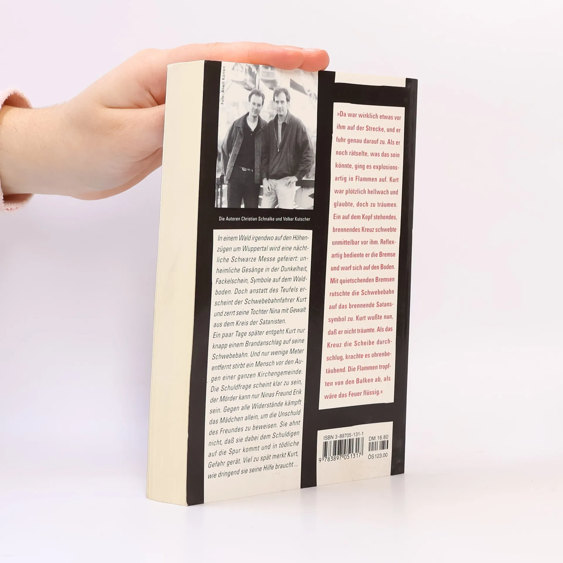 In einem Wald irgendwo auf den Höhenzügen um Wuppertal wird eine nächtliche Schwarze Messe gefeiert: unheimliche Gesänge in der Dunkelheit, Fackelschein, Symbole auf dem Waldboden, Blut fließt. Doch anstatt des Teufels erscheint der Schwebebahnfahrer Kurt und zerrt seine Tochter Nina mit Gewalt aus dem Kreis der Satanisten. Ein paar Tage später entgeht Kurt nur knapp einem Brandanschlag auf seine Schwebebahn. Nur wenige Meter entfernt stirbt ein Mensch vor den Augen einer ganzen Kirchengemeinde. Die Schuldfrage scheint klar zu sein: Der Mörder kann nur Ninas Freund Erik sein. Gegen alle Widerstände kämpft das Mädchen allein, um die Unschuld ihres Freundes zu beweisen. Sie ahnt nicht, dass sie dabei dem Schuldigen auf die Spur kommt und in tödliche Gefahr gerät. Viel zu spät merkt Kurt, wie dringend sie seine Hilfe braucht...§Dieser Krimi sorgt mit viel Action und unverkennbarem Lokalkolorit für reichlich Nervenkitzel.