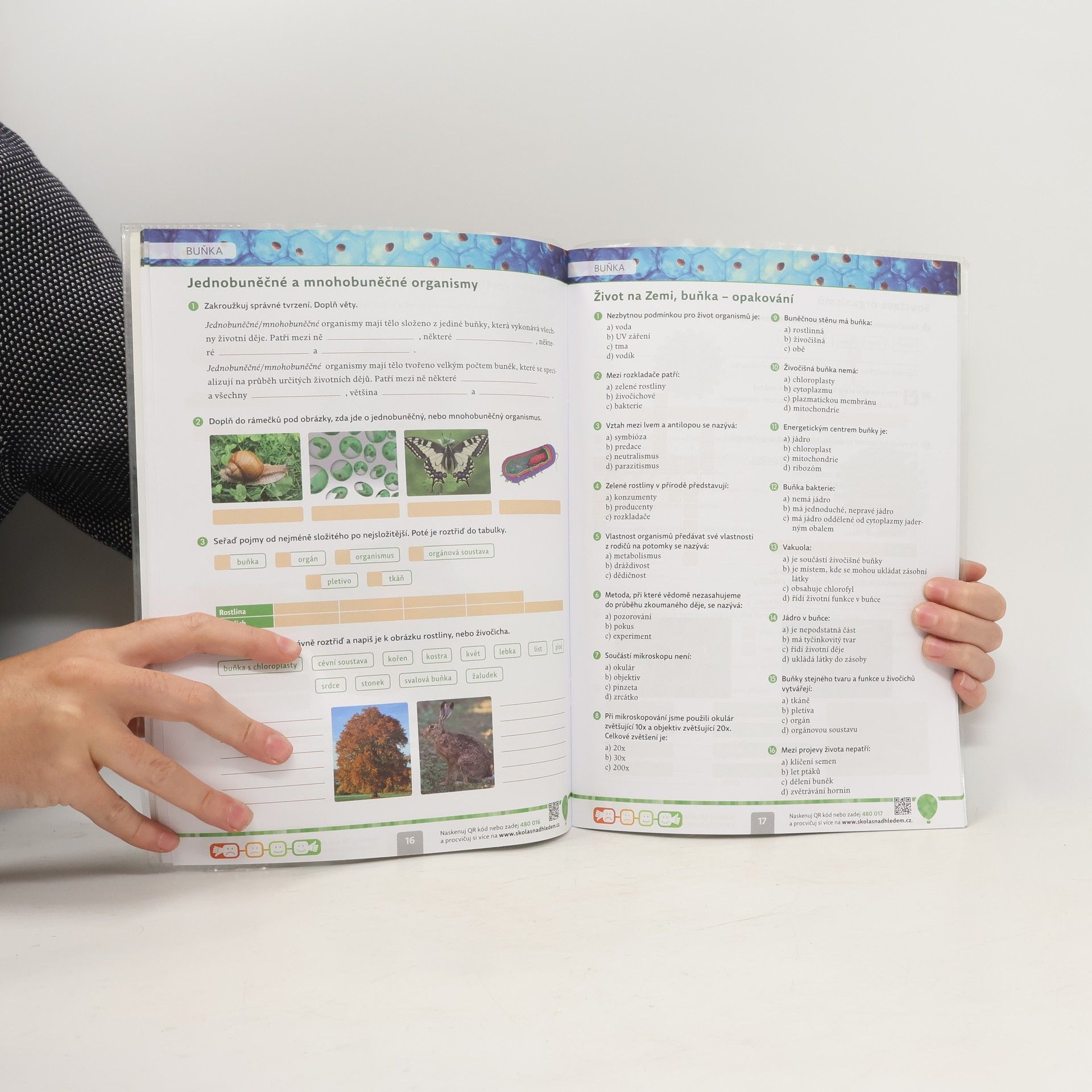 Univerzální pracovní sešit pro výuku přírodopisu v 6. ročníku základní školy a odpovídajícím ročníku víceletých gymnázií nabízí různé úkoly, testy a možnost sebehodnocení, a to bez vazby na konkrétní učebnici. Obsahuje témata jako planeta Země, život na Zemi, buňka, mikroorganismy, houby, lišejníky, řasy, prvoci, bezobratlí živočichové, ekosystémy a ochrana přírody. Žáci mají přístup k online procvičování a testování, což jim poskytuje okamžitou zpětnou vazbu. Pomocí unikátního kódu si mohou vypracovávat další zábavná online cvičení a souhrnné testy k jednotlivým tématům. Pracovní sešit zahrnuje širokou škálu zábavných úkolů s různou obtížností, které podporují upevnění učiva a rozvoj kompetencí. Žáci se setkávají s úkoly jako čtení z obrazového materiálu, spojování jevů, aplikace informací, vyjádření názoru, hodnocení tvrzení a oprava chyb v textu. Dále jsou zařazeny úkoly vyžadující znalosti z více předmětů. Každý větší blok učiva obsahuje souhrnný test a na závěr sešitu jsou instrukce na dvě hry v přírodě zaměřené na vztahy mezi organismy. Přehled učiva je k dispozici zdarma na portálu, kde najdou žáci také další interaktivní úkoly.