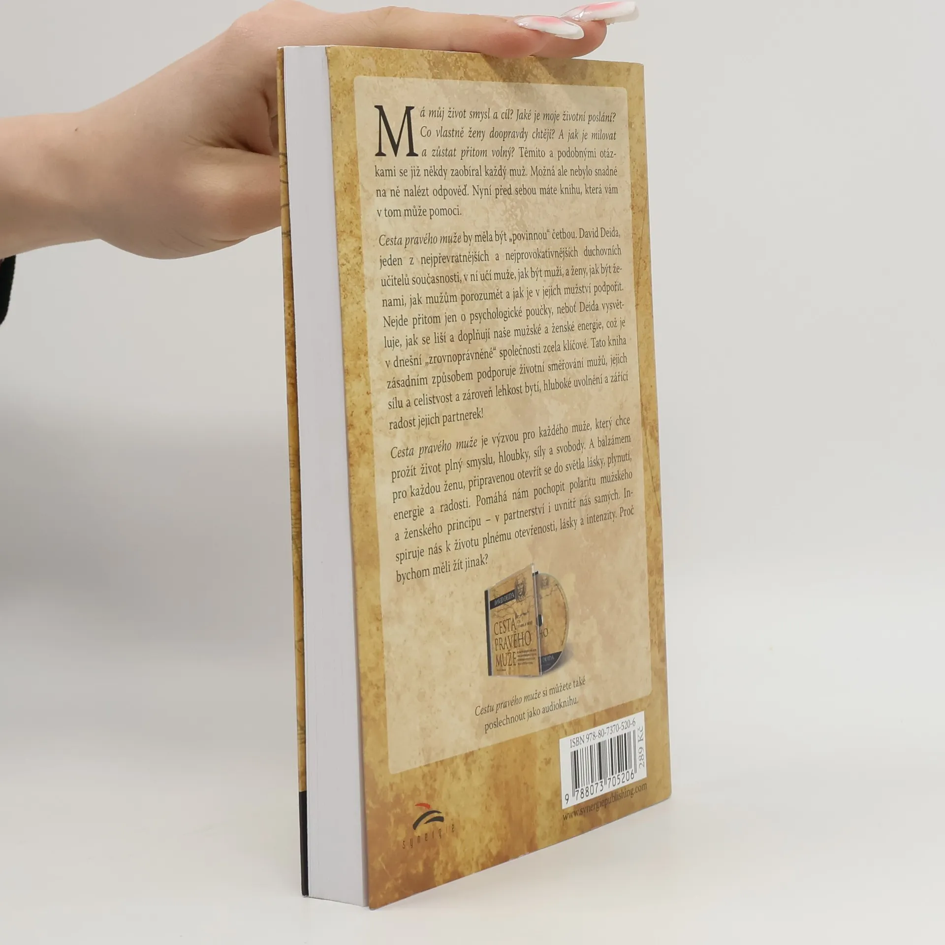 Má můj život smysl a cíl? Jaké je moje životní poslání? Co vlastně ženy doopravdy chtějí? A jak je milovat a zůstat při tom volný? Těmito a podobnými otázkami se již někdy zaobíral každý muž. Nebylo na ně ale snadné nalézt odpověď. Nyní před sebou máte knihu, která vám v tom může pomoci. Cesta pravého muže by měla být „povinnou“ četbou. David Deida, jeden z nejpřevratnejších a nejprovokativnějších duchovních učitelů současnosti, učí muže, jak být muži, a ženy, jak být ženami, jak mužům porozumět a jak je v jejich mužství podpořit. Nejde přitom jen o psychologické poučky, neboť Deida vysvětluje, jak se liší a doplňují naše mužské a ženské energie, což je v dnešní „zrovnoprávněné“ společnosti zcela klíčové. Tato kniha zásadním způsobem podporuje životní směrování mužů, jejich sílu a celistvost a zároveň lehkost bytí, hluboké uvolnění a zářící radost jejich partnerek.