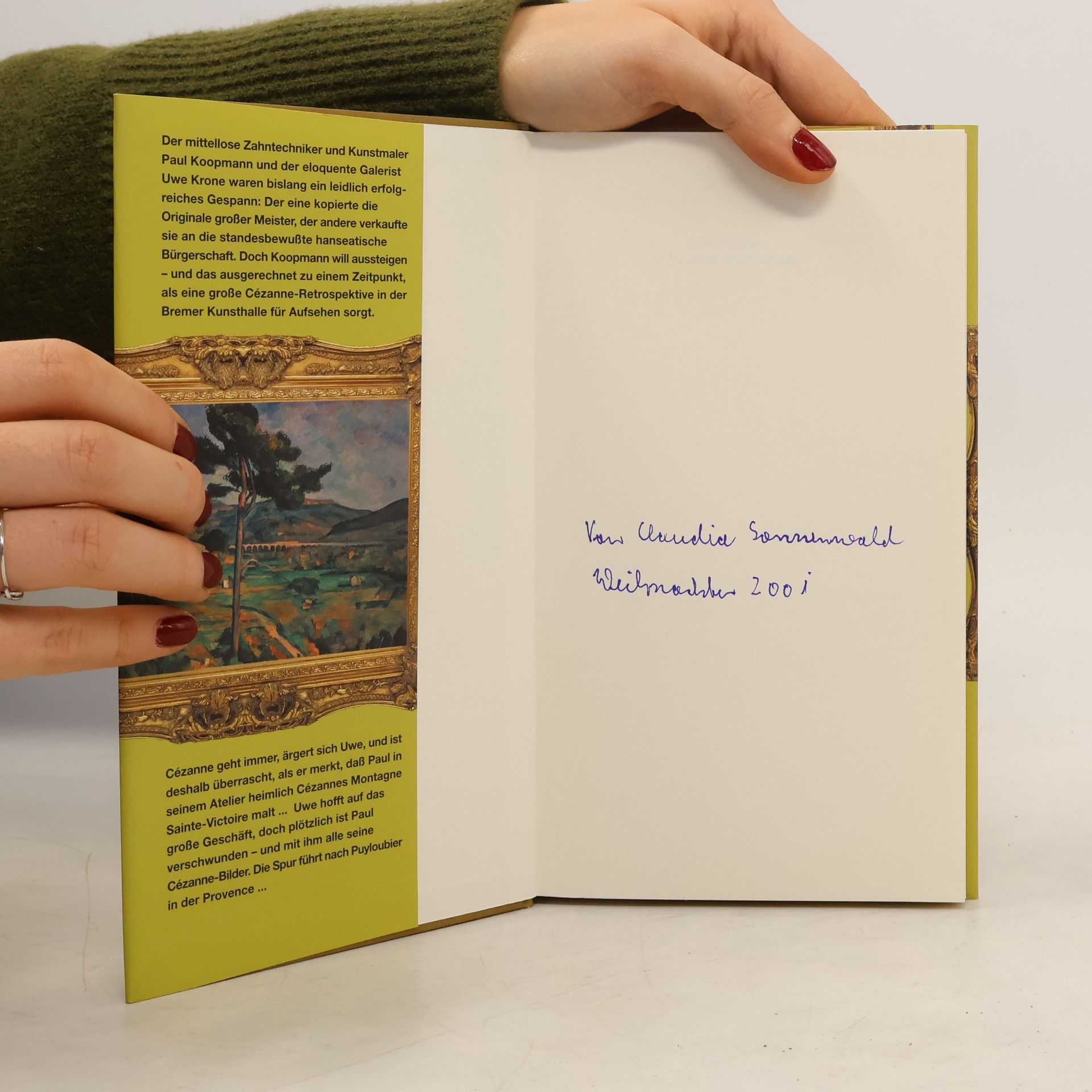 Der mittellose Zahntechniker und Kunstmaler Paul Koopmann und der eloquente Galerist Uwe Krone waren bislang ein leidlich erfolgreiches Gespann: Der eine kopierte die Originale großer Meister, der andere verkaufte sie an die standesbewusste Hanseatische Bürgerschaft. Doch Koopmann will aussteigen - und das ausgerechnet zu einem Zeitpunkt, als eine große Cezanne-Retrospektive in der Bremer Kunsthalle für Aufsehen sorgt. Cezanne geht immer, ärgert sich Uwe, und ist deshalb überrascht, als er merkt, dass Paul in seinem Atelier heimlich Cezannes Montagne Sainte-Victoire malt ... Uwe hofft auf das große Geschäft, doch plötzlich ist Paul verschwunden - und mit ihm alle seine Cezanne-Bilder. Die Spur führt nach Puyloubier in der Provence ...§Diese Erzählung ist ein Krimi und zugleich mehr als das: Sie ist Malerei. Ein kreatives Experiment, in dem Studenten eines Schreibseminars an der Hochschule der Künste in Bremen mit jeweils einzelnen Pinselstrichen ein erzählerisches Gesamtbild ko mponiert haben.