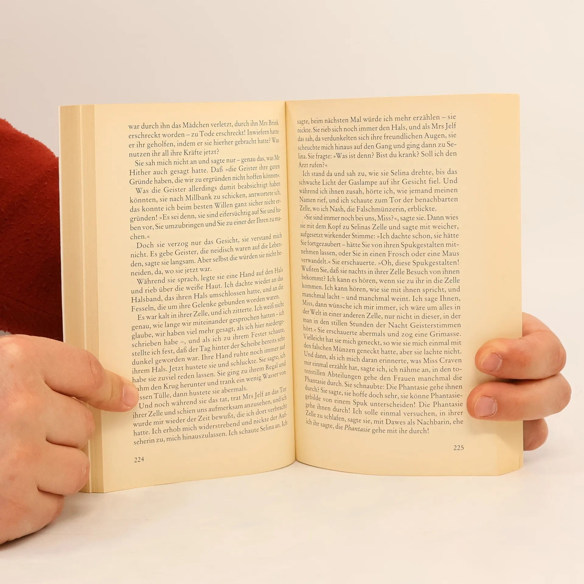 Margaret ist mit ihren 27 Jahren im viktorianischen England bereits eine alte Jungfer. Sie lebt noch bei ihrer Mutter, der Vater ist vor kurzem gestorben, die jüngere Schwester Helen längst verheiratet. Margaret nimmt, um schlafen zu können, jeden Abend Laudanum; ihre Tage vergehen in einer Art betäubtem Müßiggang. Da ihr dieser Zustand unerträglich ist, beschließt sie, mehrmals in der Woche im Frauengefängnis Millbank, einem düsteren Ort ohne Trost und Hoffnung, karitative Arbeit zu verrichten, indem sie mit den Gefangenen spricht. Bereits bei einem der ersten Besuche lernt Margaret Selina kennen, die wegen Betrugs und Diebstahls zu einer mehrjährigen Haftstrafe verurteilt wurde. Dennoch scheint Selina auf Margarets Zuspruch nicht angewiesen zu sein, denn sie steht in einer engen Beziehung zu ihren Geistern. Selina ist ein Medium, und sie weiß, daß die Geister, die sie besuchen kommen, sie eines Tages auch befreien werden. Der zunächst skeptischen Margaret liefert Selina einen Beweis nach dem anderen für ihre spirituellen Kräfte. Zwischen den beiden Frauen entsteht eine enge Beziehung, in deren Verlauf Selina die Verführerin und Margaret die Verführte ist. Und dann rückt der Tag von Selinas Flucht immer näher. Sarah Waters' mehrfach preisgekrönter Roman erzählt die unheimliche Geschichte um Freundschaft und Verrat zweier gegensätzlicher Frauen.