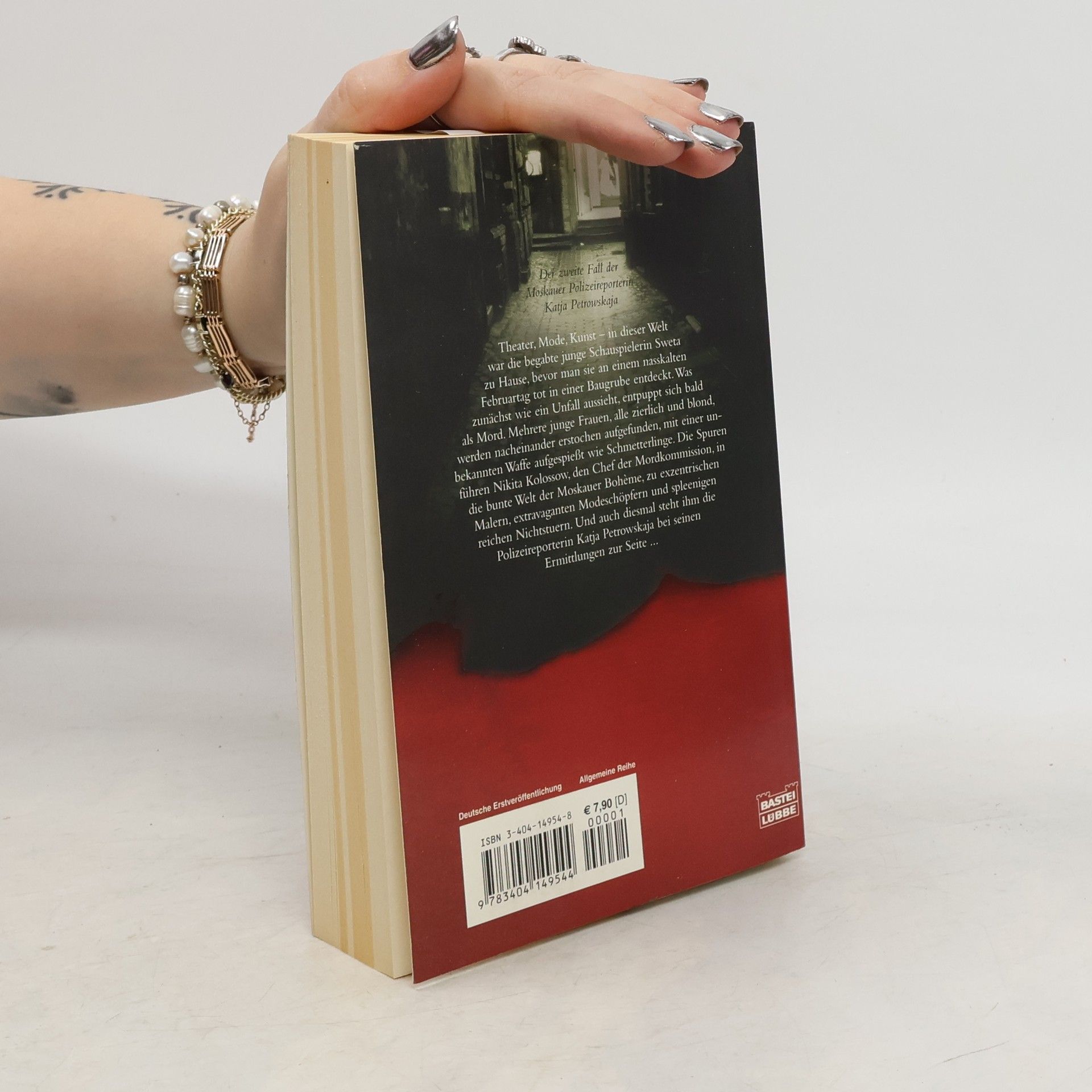 Theater, Morde, Kunst - in dieser Welt war die begabte junge Schauspielerin Sweta zu Hause, bevor man sie an einem nasskalten Februartag tot in einer Baugrube entdeckt. Was zunächst wie ein Unfall ausieht, entpuppt sich bals als Mord. Mehrere junge Frauen, alle zierlich und blond, werden nacheinander erstochen aufgefunden, mit eine runbekannten Waffe aufgespießt wie Schmetterlinge. Die Spuren führen Nikita Kolossow, den Chef der Mordkommission, in die bunte Welt der Moskauer Bohème, zu exzentrischen Malern, extravaganten Modeschöpfern und spleenigen Nichtstuern. Und auch diesmal steht ihm die Polizeireporterin Katja Petrowskaja bei seinen Ermittlungen zur Seite.