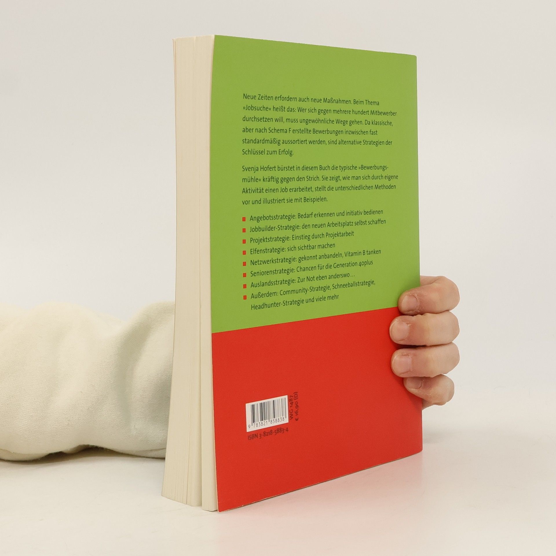 Ungewöhnliche Wege zum neuen Job Svenja Hofert zeigt besondere Methoden und Tricks für die Eroberung eines neuen Arbeitsplatzes - ohne dass man durch die traditionelle Bewerbungsmühle gehen muss. Bei 300 Konkurrenten pro Stelle wird Jobsuche zu einem reinen Lotteriespiel. Da klassische, aber nach Schema F erstellte Bewerbungen inzwischen fast standardmäßig aussortiert werden, sind alternative Strategien der Schlüssel zum Erfolg. Svenja Hofert bürstet in diesem Buch den typischen Bewerbungsweg kräftig gegen den Strich. Sie zeigt, wie man sich durch eigene Aktivität einen Job „erarbeitet“, stellt die unterschiedlichen Methoden vor und illustriert sie mit Fallbeispielen. o Angebotsstrategie: Bedarf erkennen und bedienen o Aufstellungsstrategie: positionieren statt bewerben o Job-Builder-Strategie: den neuen Arbeitsplatz selbst schaffen o Projekt-Strategie: Einstieg durch Projektarbeit o Multiplikatoren-Strategie: durch Verbündete zum neuen Job o Beziehungs-Strategie: Vitamin B, aber richtig o u. v. m.