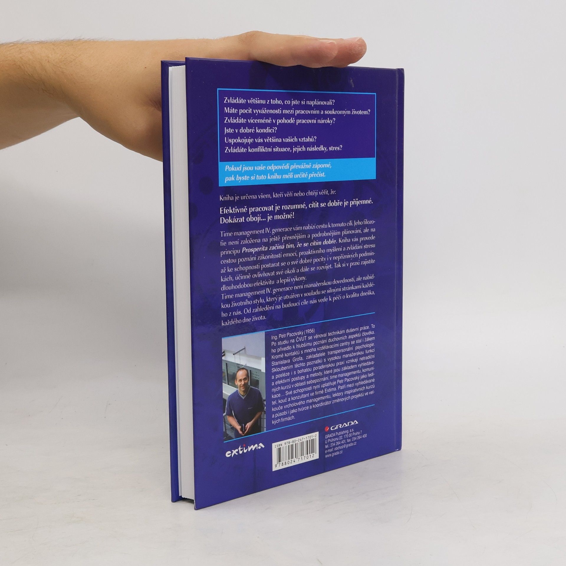 Zvládáte většinu z toho, co jste si naplánovali? Máte pocit vyváženosti mezi pracovním a soukromým životem? Zvládáte víceméně v pohodě pracovní nároky? Jste v dobré kondici? Uspokojuje vás většina vašich vztahů? Zvládáte konfliktní situace, jejich následky, stres? Pokud jsou vaše odpovědi převážně záporné, pak byste si tuto knihu měli určitě přečíst. Publikace je určena všem, kteří věří nebo chtějí věřit, že: Efektivně pracovat je rozumné, cítit se dobře je příjemné, dokázat obojí... je možné! Time management IV. generace vám nabízí cestu k tomuto cíli. Jeho filozofie není založena na ještě přesnějším a podrobnějším plánování, ale na principu: Prosperita začíná tím, že se cítím dobře. Kniha vás provede cestou poznání zákonitostí emocí, proaktivního myšlení a zvládání stresu až ke schopnosti postarat se o své dobré pocity i v nepříznicých podmínkách, účinně ovlivňovat své okolí a dále se rozvíjet. Tak si v praxi zajístíte dlouhodobou efektivitu a lepší výkony. (time management IV. generace) Dotisky r. 2008 a 2011