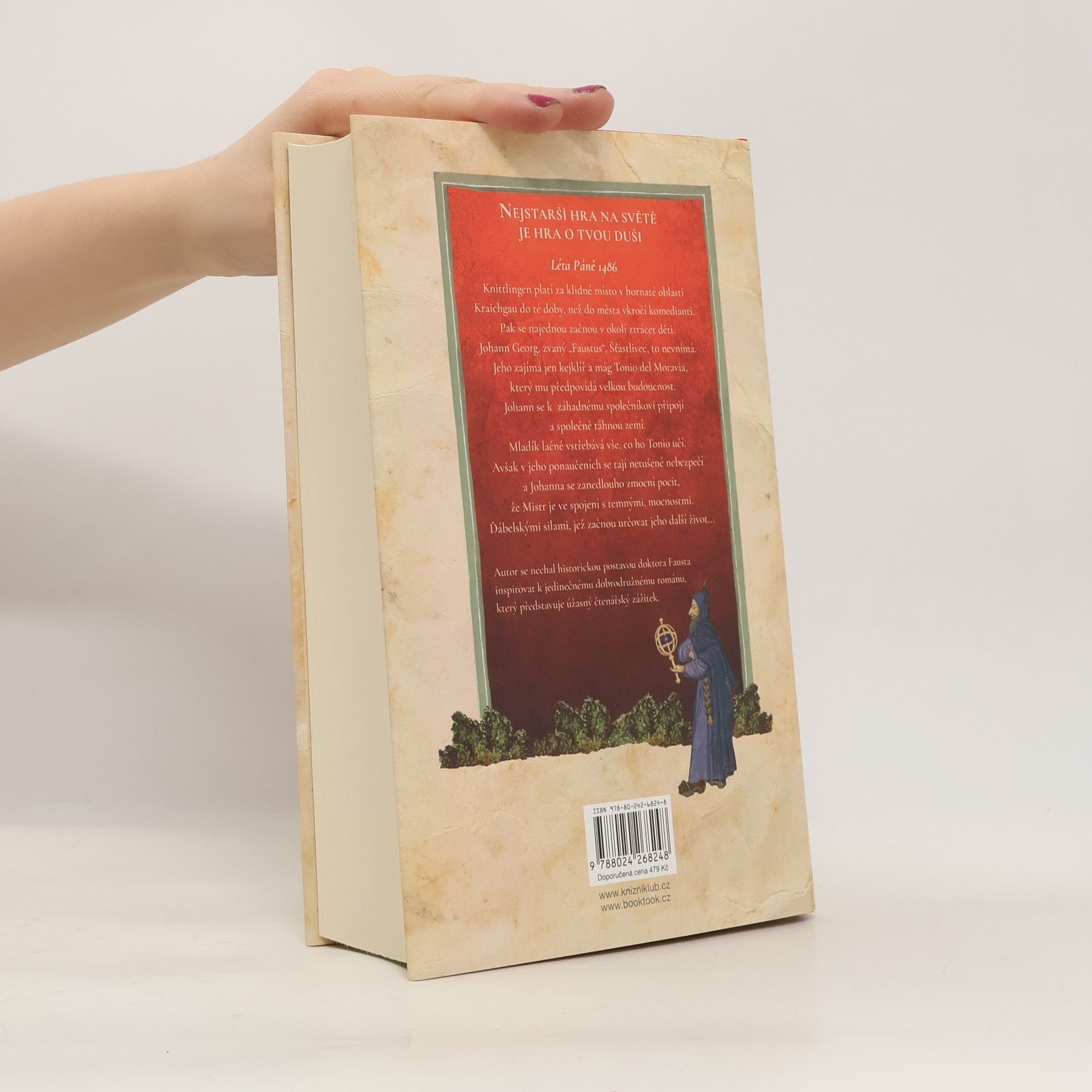 1486: Knittlingen platí za klidné místo v hornaté oblasti Kraichgau do té doby, než do města vkročí komedianti. Najednou se v okolí začnou ztrácet děti. Johann Georg, zvaný „Faustus“, Šťastlivec, to nevnímá. Jeho zajímá jen kejklíř a mág Tonio del Moravia, který mu předpovídá velkou budoucnost. Johann se připojí k záhadnému společníkovi a společně táhnou zemí. Mladík lačně vstřebává vše, co ho Tonio učí. Avšak v Toniových ponaučeních se tají netušené nebezpečí a Johanna se brzy zmocní pocit, že jeho Mistr je ve spojení s temnými mocnostmi. Silami, které začnou určovat jeho další život… Oliver Pötzsch, autor bestsellerové série o Katově dceři, se nechal historickou postavou doktora Fausta inspirovat k jedinečnému dobrodružnému románu, který představuje úžasný čtenářský zážitek.