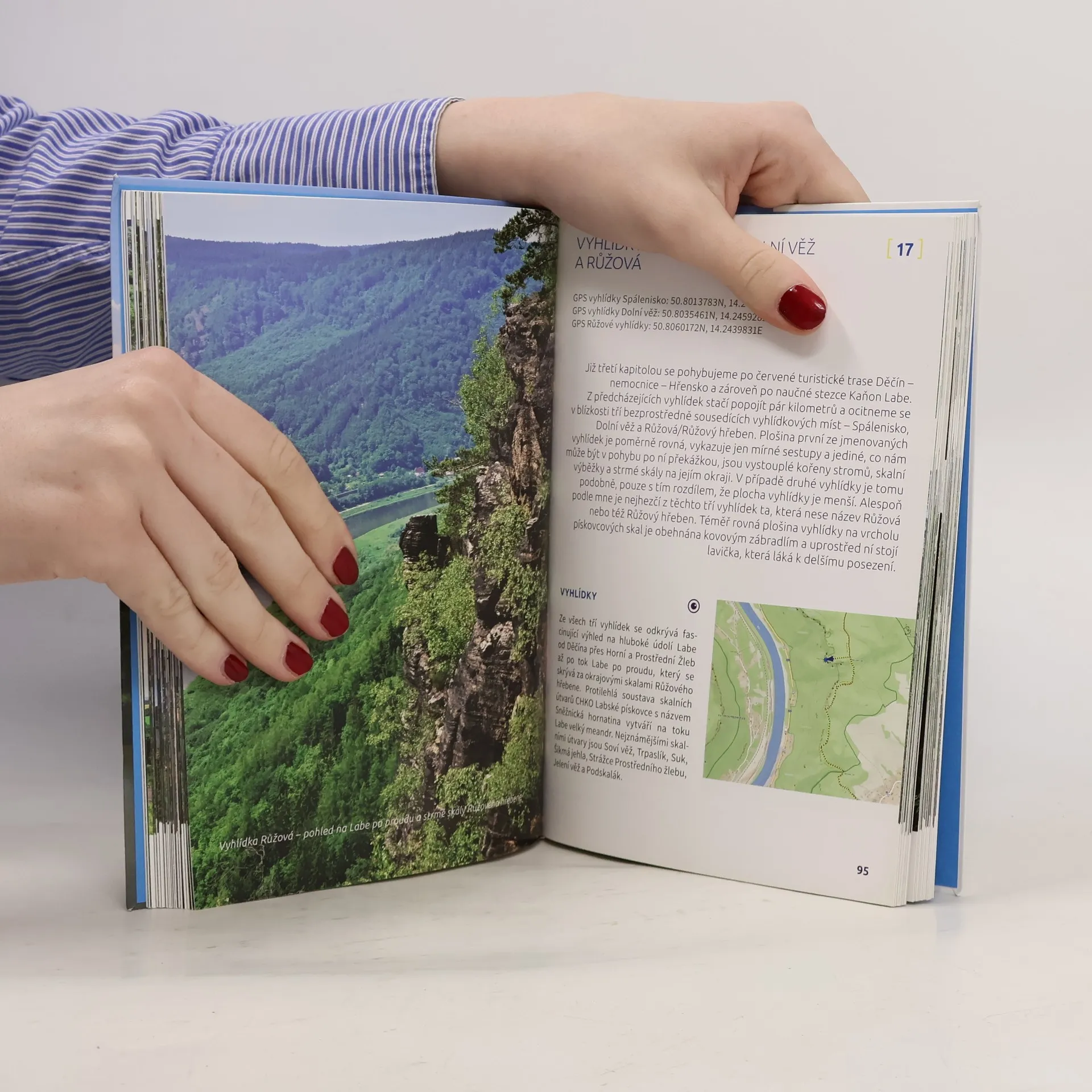 Navštivte 51 vyhlídkových míst na řece Labe od jeho soutoku s Vltavou pod Mělníkem až po saské město Pirna. Jedná se o nejatraktivnější úsek řeky, která pramení na území Čech (a jako jedna z mála nemá jméno v ženském rodě) a pod názvem Elbe protéká územím Spolkové republiky Německo, kde se také vlévá do Severního moře. Labské vyhlídky se často nacházejí ve velké výšce nad hladinou řeky, přístup k nim je tedy náročnější. U každého z našich povídání o vyhlídce proto najdete kromě fotografií i výřez z turistické mapy, souřadnice místa, popis přístupu k vyhlídce (autem, autobusem, na kole či pěšky) a popis zajímavostí v okolí. Zbývá tedy už jen obout boty, vzít fotoaparát a vyrazit po proudu Labe!
