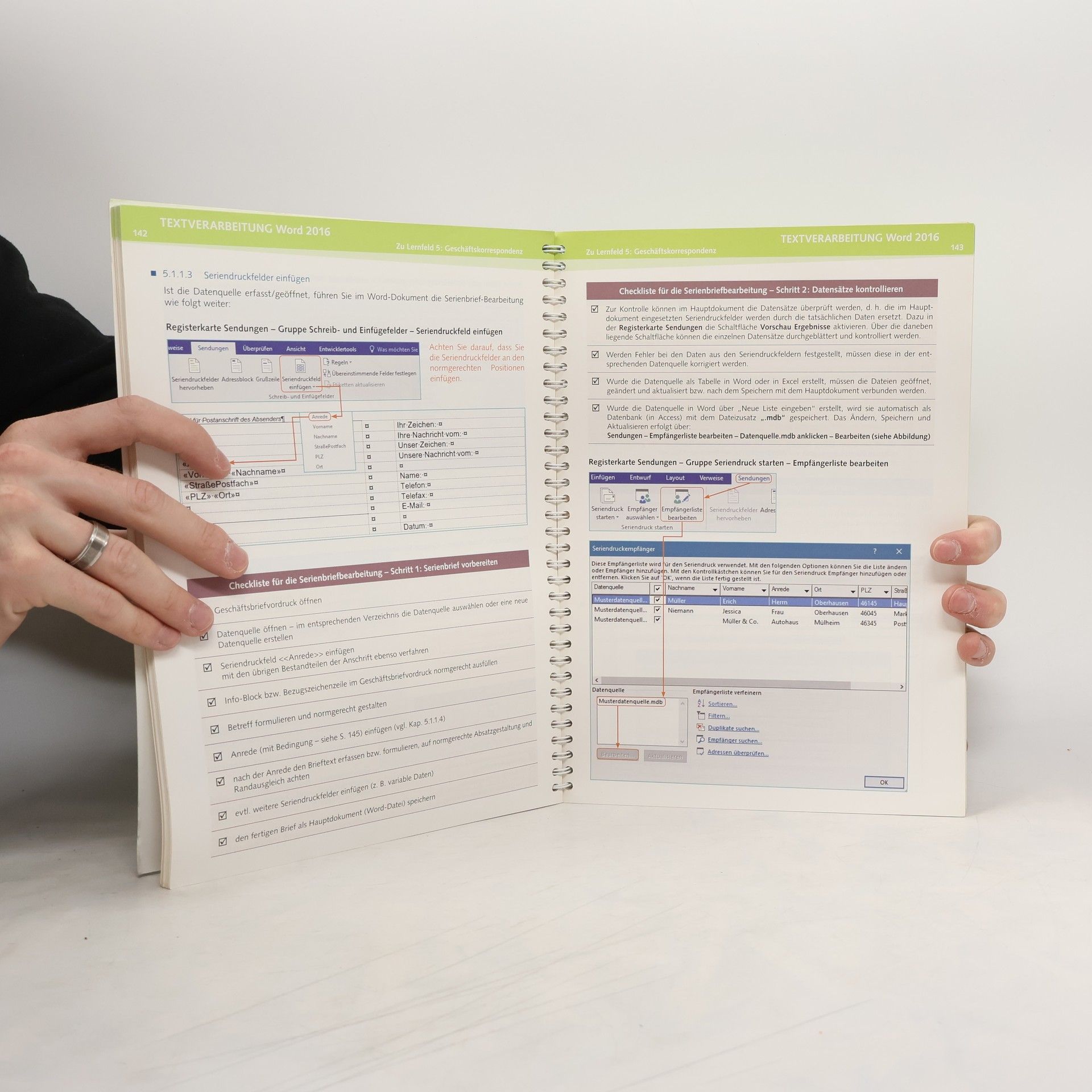 Das Lehr- und Arbeitsbuch kann im Unterricht lernfeldbegleitend eingesetzt werden und ist zum Selbststudium bestens geeignet - auch im Hinblick auf die Vorbereitung auf die Prüfung in Informationsverarbeitung, die bereits nach 15 Monaten ansteht. Durch seine Konzeption kann es von der ersten Unterrichtsstunde an parallel zur Wiederholung und Festigung der Inhalte, aber auch zur Nachbereitung einzelner Themen genutzt werden. Die abschließenden Übungen in jedem Kapitel bieten eine optimale Vorbereitung auf die Abschlussprüfung der IHK. Der Lernstoff wird nicht in traditioneller Weise angeboten, sondern orientiert sich konsequent am Lernzuwachs der Auszubildenden in den einzelnen Lernfeldern des Rahmenlehrplans. Hier werden die Auszubildenden schon sehr früh an das Erstellen von Präsentationen im Rahmen betrieblicher Abläufe herangeführt. Da den Präsentationen auch in der Praxis immer höherer Stellenwert zukommt, steht dem Buch ein PowerPoint-Exkurs voran. Zur besseren Orientierung sind Exkurs sowie alle folgenden PowerPoint-Übungen durch farbiges Papier gekennzeichnet. Nach dem Exkurs zu PowerPoint beginnen die lernfeldorientierten Kapitel für die Textverarbeitung. Die Struktur des Buches sieht in jedem Kapitel - nach Einzelthemen gegliedert - einen Informationsteil - begleitet von Tipps, Checklisten, besonderen Hinweisen sowie Erläuterungen zur DIN 5008 - mit anschließendem Übungsteil vor. Die Ergebnisse sind für die Auszubildenden in gedruckter sowie digitaler Form auf der beiliegenden CD gut nachvollziehbar. Am Ende jedes Kapitels gibt es eine auf das Kapitel/Lernfeld abgestimmte PowerPoint-Übung. Auch hier werden die Ergebnisse in gedruckter Form dargestellt und in digitaler Form präsentiert. Die Übungen und Aufgaben sind im Hinblick auf die Prüfungsanforderungen in Informationsverarbeitung so angelegt, dass die Auszubildenden - das erforderliche technische Know-How erlernen - lernen, sich mit betrieblichen Abläufen und Problemstellungen auseinanderzusetzen und die erforderlichen Bearbeitungen rationell durchführen zu können - selbstständig kaufmännische Schriftstücke formulieren können - in Geschäftsbriefen, internen Schreiben und Präsentationen die DIN 5008 umsetzen können - lernen, nach konkreten Anweisungen, Gestaltungen und Formatierungen zu arbeiten - lernen, Vorgaben anhand von inhaltlichen Stichpunkten nach den Gesichtspunkten moderner Geschäftskorrespondenz auszuformulieren