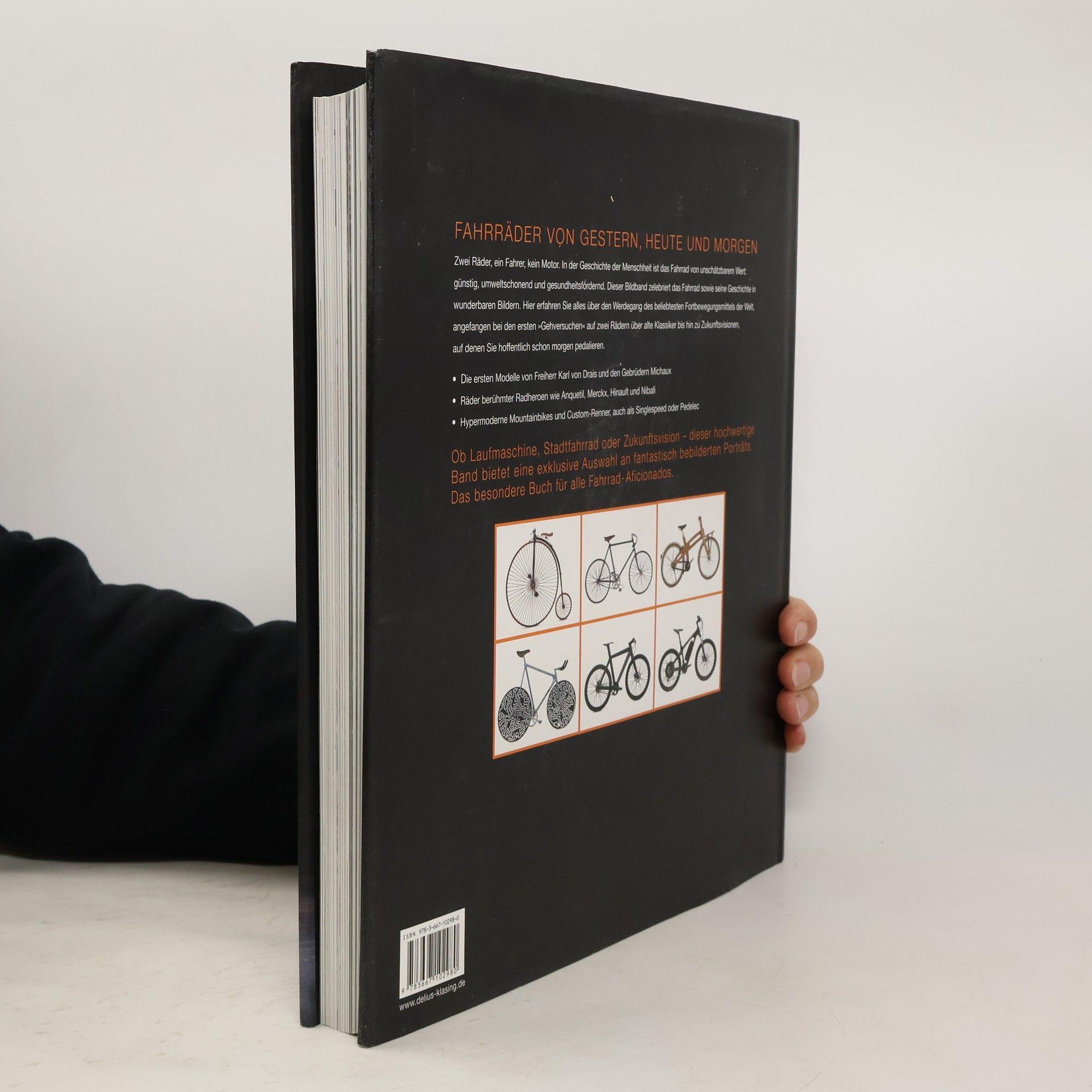 In diesem Buch finden Sie alle Modelle, die in der Geschichte des Fahrrads einen Stellenwert errungen haben: Von den ersten Laufrädern, der Erfindung von Kette und Pedale oder dem Fahrrad für Frauen bis zu Rennrädern von berühmten Rad-Heroen wie Hinault, Merckx und Co. Auch Mountainbikes, ultrahippe Custom-Renner, Single-Speed oder Pedelec sind mit dabei. „Fahrräder. Klassiker – Trends – Visionen“ zelebriert Fahrräder und ihre Geschichte. Roberto Gurian, von Haus aus Motorsport-Journalist und selbst begeisterter Rennradfahrer, stellt auf jeweils einer Doppelseite alle Radtypen vom Velociped über das Klapprad im Regenschirmformat bis hin zum fancy Custombike aus Holz vor. Berühmte Räder und ihre Tour-Größen oder Rad-Heroen werden in kleinen Porträts zusätzlich gewürdigt.