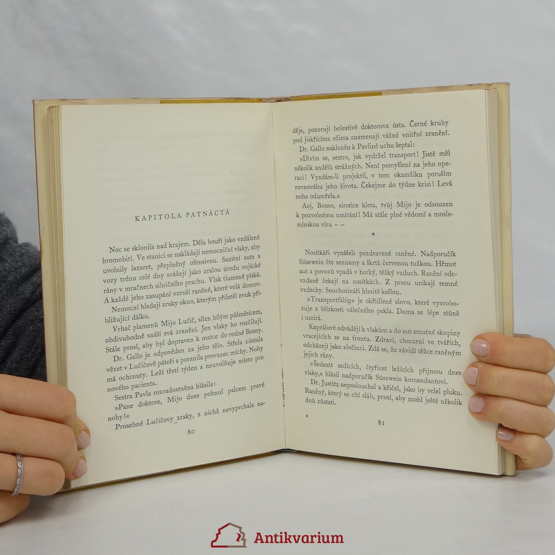 Hlavní postavou knihy je Pavla Hrázká pocházející z Prahy. Pracuje jako zdravotní sestřička v polním lazaretu na jižní frontě (v rámci Červeného kříže), kam nastoupila ke konci první světové války. Místní pacienti ji mají rádi, Pavla je k nim moc hodná, laskavá, milá, je pro ně andělem. Její příběh však nemá šťastného konce.