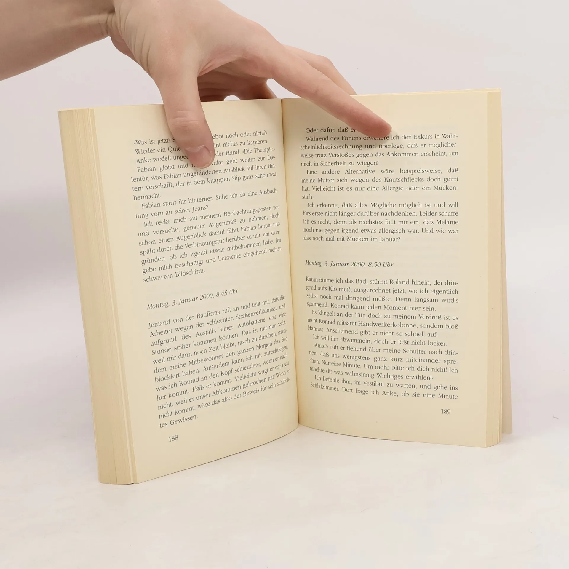 Über das Buch: Karolines Gefühle sind im Keller: Ihr Beinahe-Verlobter schwängert seine Sekretärin und lässt Karoline sitzen – mit einer baufälligen Villa, einer Riesenhypothek und einer handfesten Schreibblockade. Während die junge Autorin ihren Frust in Prosecco ertränkt, zieht kurzerhand ihr schwuler Freund Roland bei ihr ein. Als dann auch noch dessen Liebhaber Fabian mit seinem Schlafsack anrückt und Karolines männergeschädigte Freundin Anke in der Villa Zuflucht sucht, ist das Chaos aus Bau- und Beziehungslärm komplett. Zum Glück gibt es da noch Konrad mit dem Waschbrettbauch und dem Zaubermittel gegen Katastrophen – Sex, und das am besten täglich … Der Roman ist als Erstausgabe im Jahr 2001 bei Bastei Lübbe erschienen. Über die Autorin: Eva Völler hat sich schon als Kind gern Geschichten ausgedacht. Trotzdem hat sie zuerst als Richterin und später als Rechtsanwältin ihre Brötchen verdient, bevor sie Juristerei und Robe schließlich endgültig an den Nagel hängte. "Vom Bücherschreiben kriegt man auf Dauer einfach bessere Laune als von Rechtsstreitigkeiten. Und man kann jedes Mal selbst bestimmen, wie es am Ende ausgeht." Die Autorin lebt mit ihren Kindern am Rande der Rhön in Hessen.