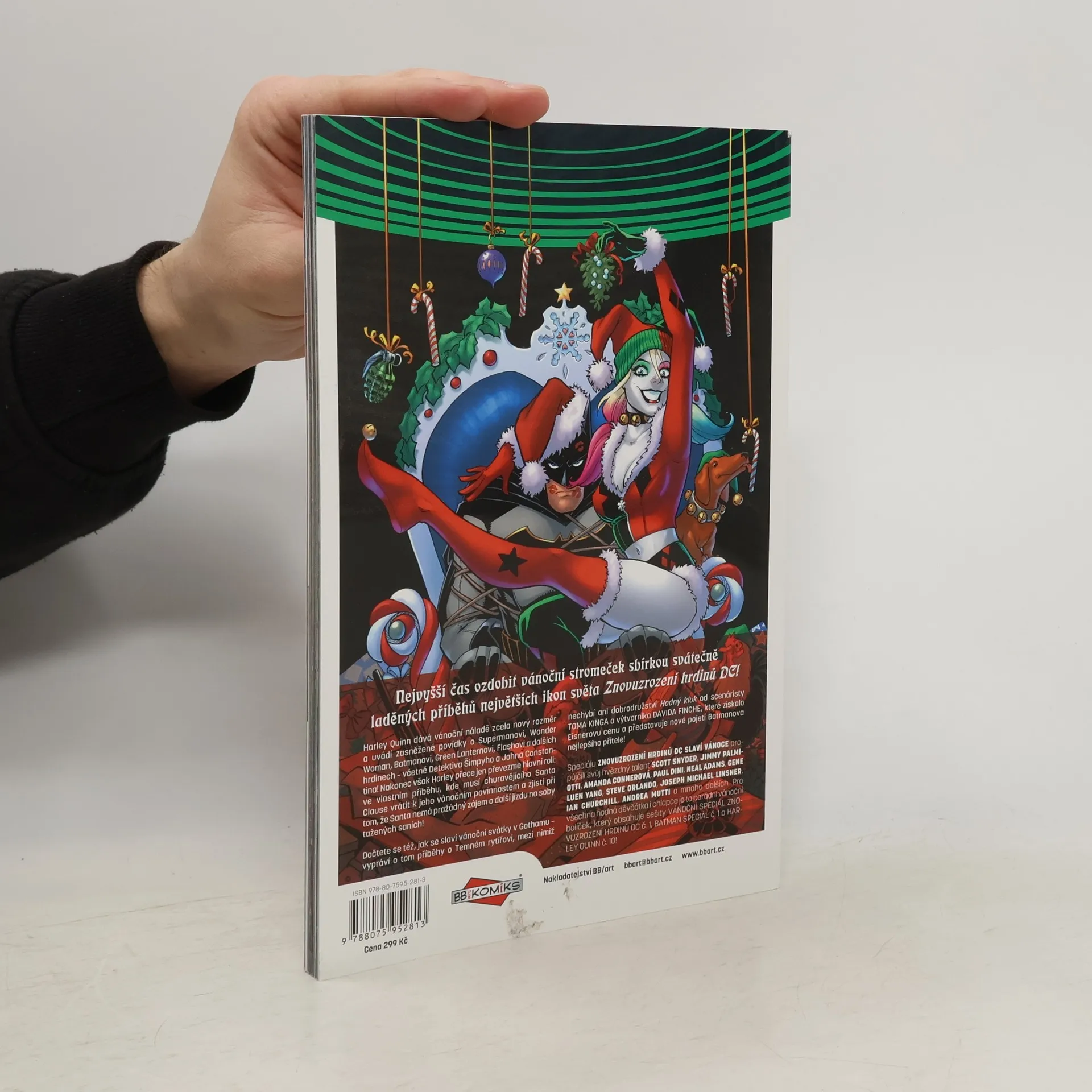 Harley Quinn dává vánoční náladě zcela nový rozměr a uvádí zasněžené povídky o Supermanovi, Wonder Woman, Batmanovi, Green Lanternovi, Flashovi a dalších hrdinech – včetně Detektiva Šimpyho a Johna Constantina! Nakonec však Harley přece jen převezme hlavní roli: ve vlastním příběhu, kde musí churavějícího Santa Clausovi vrátit k jeho vánočním povinnostem a zjistí přitom, že Santa nemá pražádný zájem o další jízdu na saních tažených soby! Dočtete se též, jak se slaví vánoční svátky v Gothamu – vypráví o tom příběhy o Temném rytířovi, mezi nimiž nechybí ani dobrodružství „Pašák“ („Good Boy“ od scenáristy TOMA KINGA a výtvarníka DAVIDA FINCHE), které získalo Eisnerovu cenu – a představuje nové pojetí Batmanova nejlepšího přítele! Speciálu ZNOVUZROZENÍ HRDINŮ DC SLAVÍ VÁNOCE propůjčili svůj hvězdný talent SCOTT SNYDER, JIMMY PALMIOTTI, AMANDA CONNEROVÁ, PAUL DINI, NEAL ADAMS, GENE LUEN YANG, STEVE ORLANDO, JOSEPH MICHAEL LINSNER, IAN CHURCHILL, ANDREA MUTTIOVÁ a mnoho dalších. Pro všechny hodná děvčátka i chlapce je to parádní vánoční balíček, který obsahuje sešity DC REBIRTH HOLIDAY SPECIAL č. 1, HARLEY QUINN č. 10 a BATMAN ANNUAL č. 1!