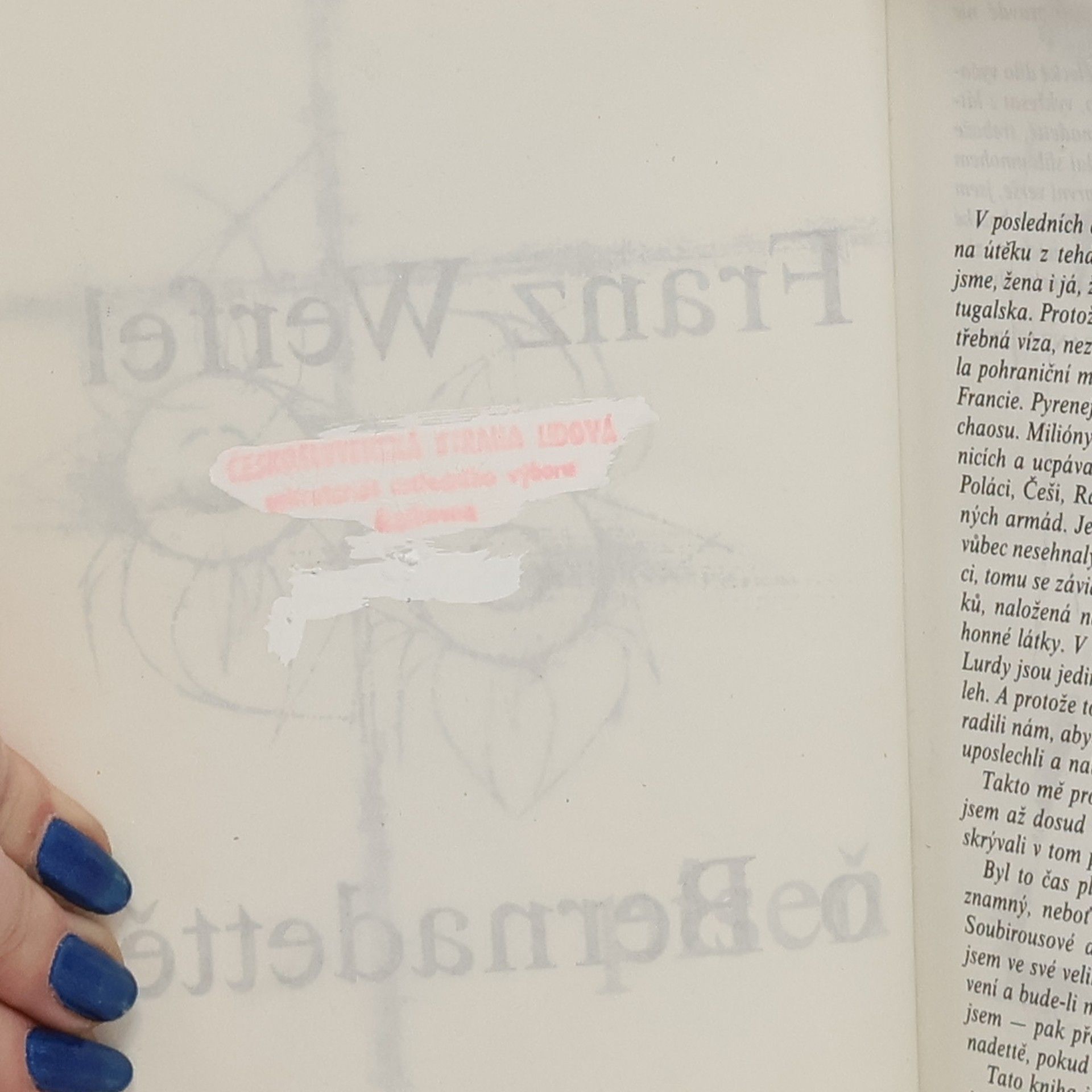 Dokumentární román, vzniklý jako splnění slibu za autorův zdařený útěk před hitlerovským nacismem z okupované Francie, vypráví příběh Bernadetty Soubirousové, chudobného děvčátka, jehož osud souvisí s poutním místem Lurdy v pyrenejském podhůří. 33-805-89