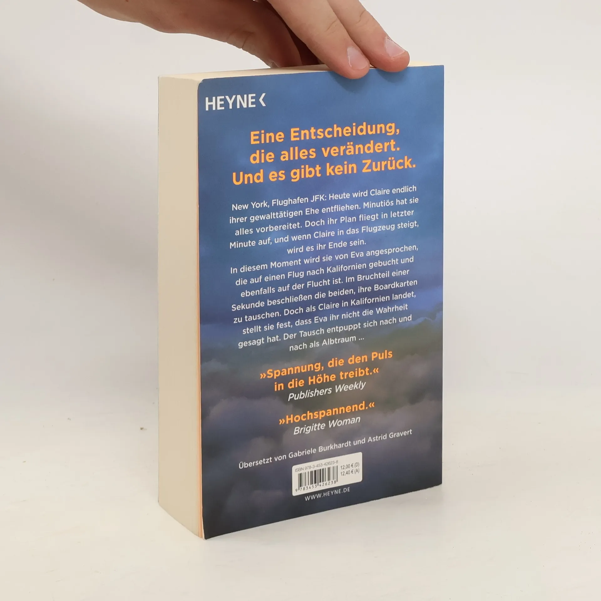 Zwei Frauen auf der Flucht. Eine Entscheidung, die alles verändert. Und kein Weg zurück. New York, Flughafen JFK: Heute wird Claire endlich ihrer gewalttätigen Ehe entfliehen. Minutiös hat sie alles vorbereitet. Doch ihr Plan fliegt in letzter Minute auf, und wenn Claire in das Flugzeug steigt, wird es ihr Ende sein. In diesem Moment wird sie von Eva angesprochen, die auf einen Flug nach Kalifornien gebucht und ebenfalls auf der Flucht ist. Im Bruchteil einer Sekunde beschließen die beiden, ihre Bordkarten zu tauschen. Doch als Claire in Kalifornien landet, stellt sie fest, dass Eva ihr nicht die Wahrheit gesagt hat. Der Tausch entpuppt sich nach und nach als Albtraum ...