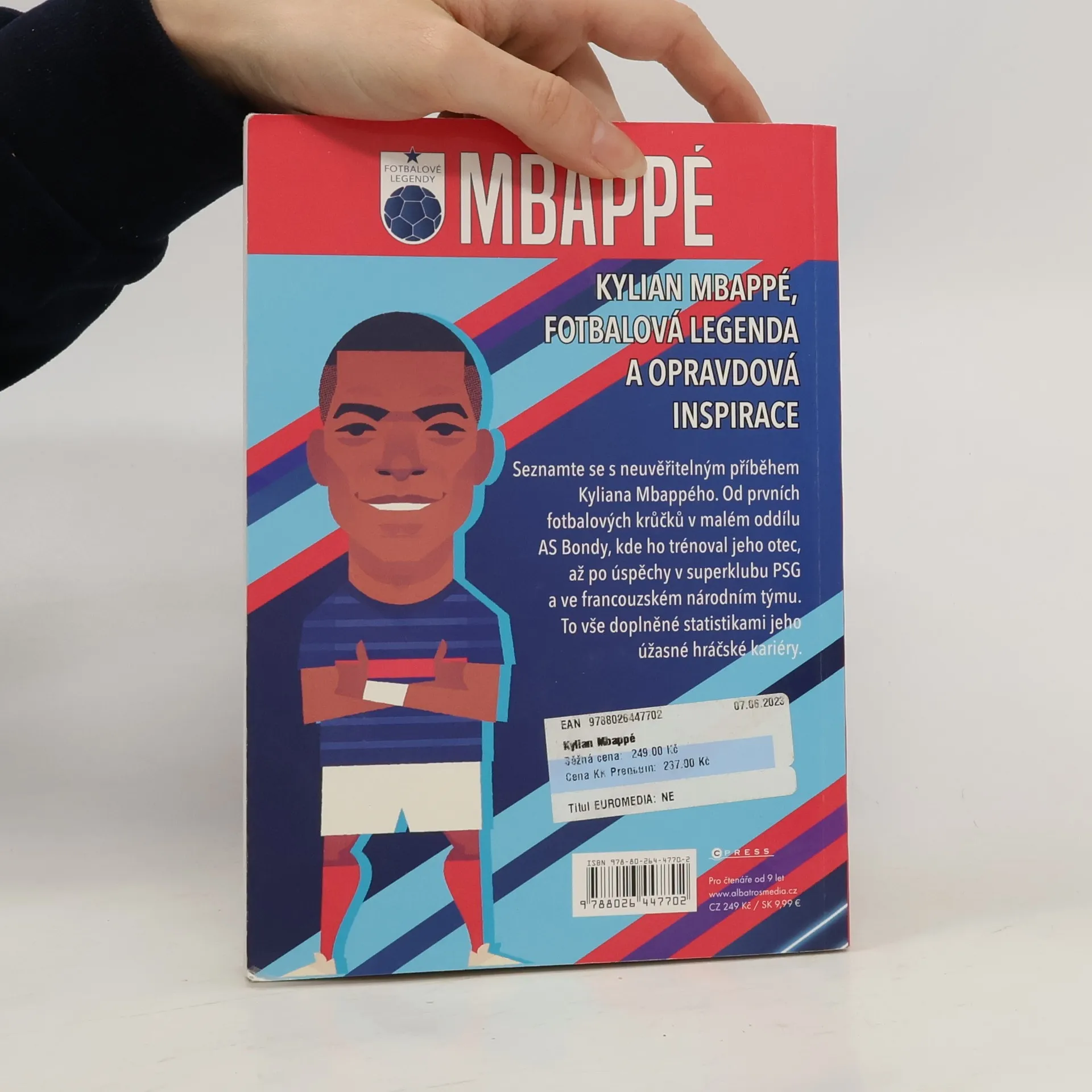 „Všechno co jste chtěli vědět o Kylianu Mbappém!“Kylian Mbappé je opravdová superhvězda, a přitom pořád skromný kluk z pařížského předměstí. Jeho životní i fotbalový příběh je inspirací pro spoustu dětí i mladých sportovců na celém světě. Díky této knize se dozvíte, jaké měl dětství, kdy začal hrát fotbal a seznámíte se s jeho rodinou. Hlavním tématem je samozřejmě fotbal a Kylianova cesta z malého fotbalového oddílu AS Bondy až do klubového gigantu jménem PSG, francouzského národního týmu a dosažení mety nejvyšší, zisku titulu na světovém šampionátu.