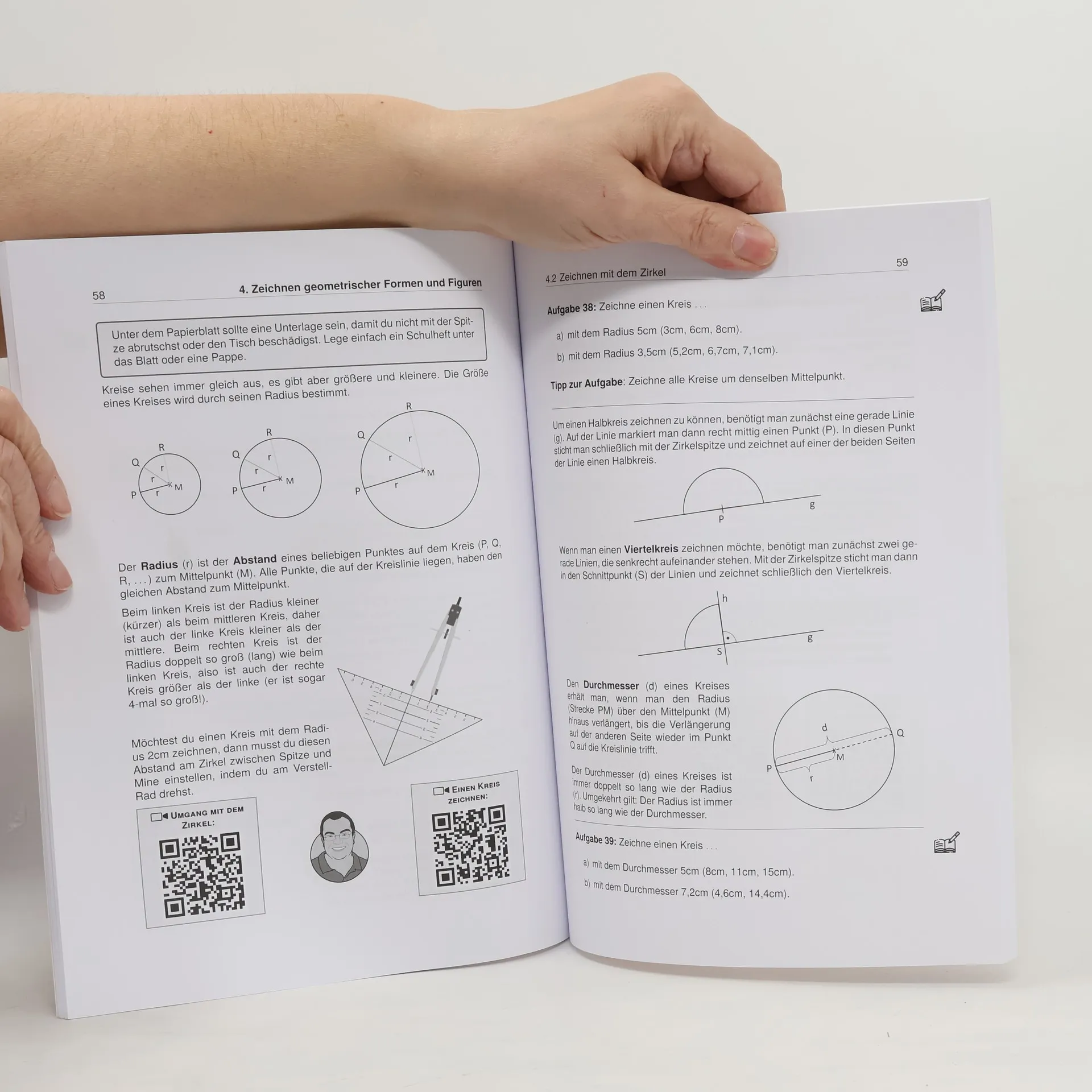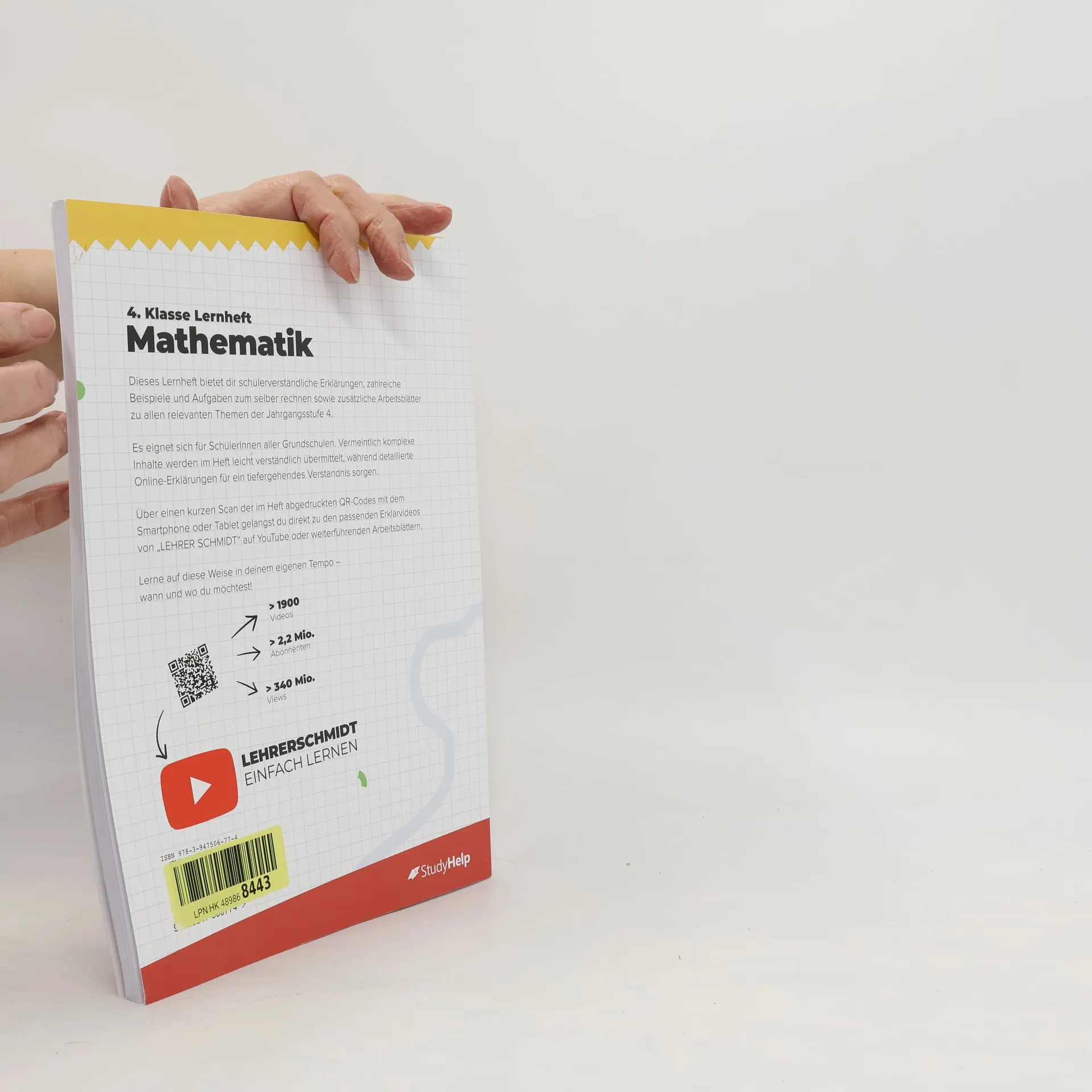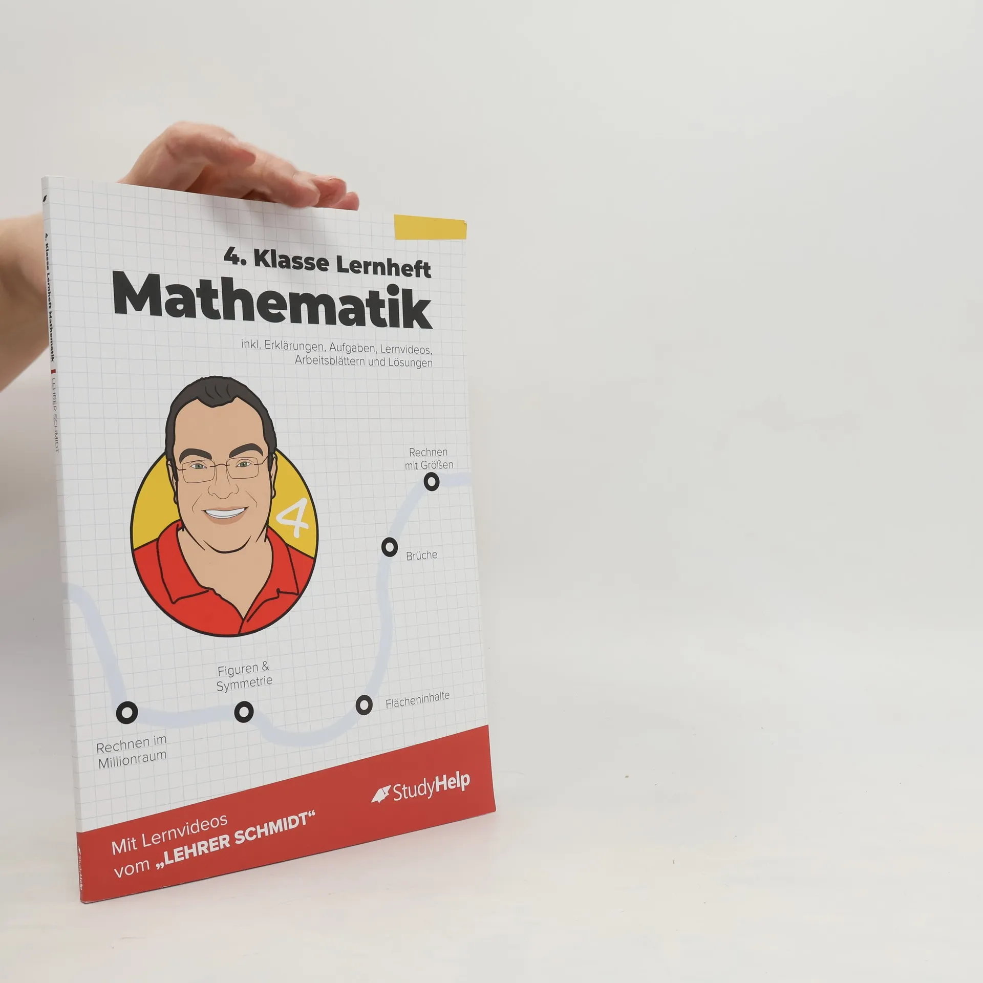 Unser Lernheft ist die ideale Ergänzung zu deinem Schulbuch und unterstützt dich mit Lernvideos von „Lehrer Schmidt“, damit du den Überblick behältst! Es umfasst 100 Seiten und bietet anschauliche Erklärungen zu Mathe für die 4. Klasse (Grundschule). Mit 49 Lernvideos (werbefrei) und über 30 Arbeitsblättern zum Download sowie 6 interaktiven Übungsaufgaben wird das Lernen abwechslungsreich gestaltet. Insgesamt findest du 58 Aufgaben mit Lösungen. Die Inhalte decken alle relevanten Themen der 4. Klasse ab, egal ob du den aktuellen Stoff vertiefen oder bereits Gelerntes wiederholen möchtest. Komplexe Zusammenhänge werden verständlich erklärt, ergänzt durch Merksätze, Skizzen und alles, was du zum Verstehen benötigst. Die Lernvideos und die didaktisch aufbereiteten Arbeitsblätter unterstützen dich zusätzlich. Die Themen sind in übersichtliche Kapitel gegliedert, die dich durch die 4. Klasse leiten. Für Eltern: Im 4. Schuljahr wird im Millionraum gerechnet, was eine Herausforderung darstellt. Das Millionbuch und die Stellentafel helfen, Struktur und Übersichtlichkeit in den großen Zahlenraum zu bringen. Schriftliche Multiplikation und Division werden im 2. Halbjahr eingeführt. Geometrische Körper werden analysiert, und der Umgang mit Zirkel und Geodreieck wird geübt. Themen im Überblick: Festigen des Rechnens im Tausenderraum, Orientierung im Millionraum, Zeichnen geometrischer Formen, Symmetrie, Brüche, Flächeninhalte, Rechne
