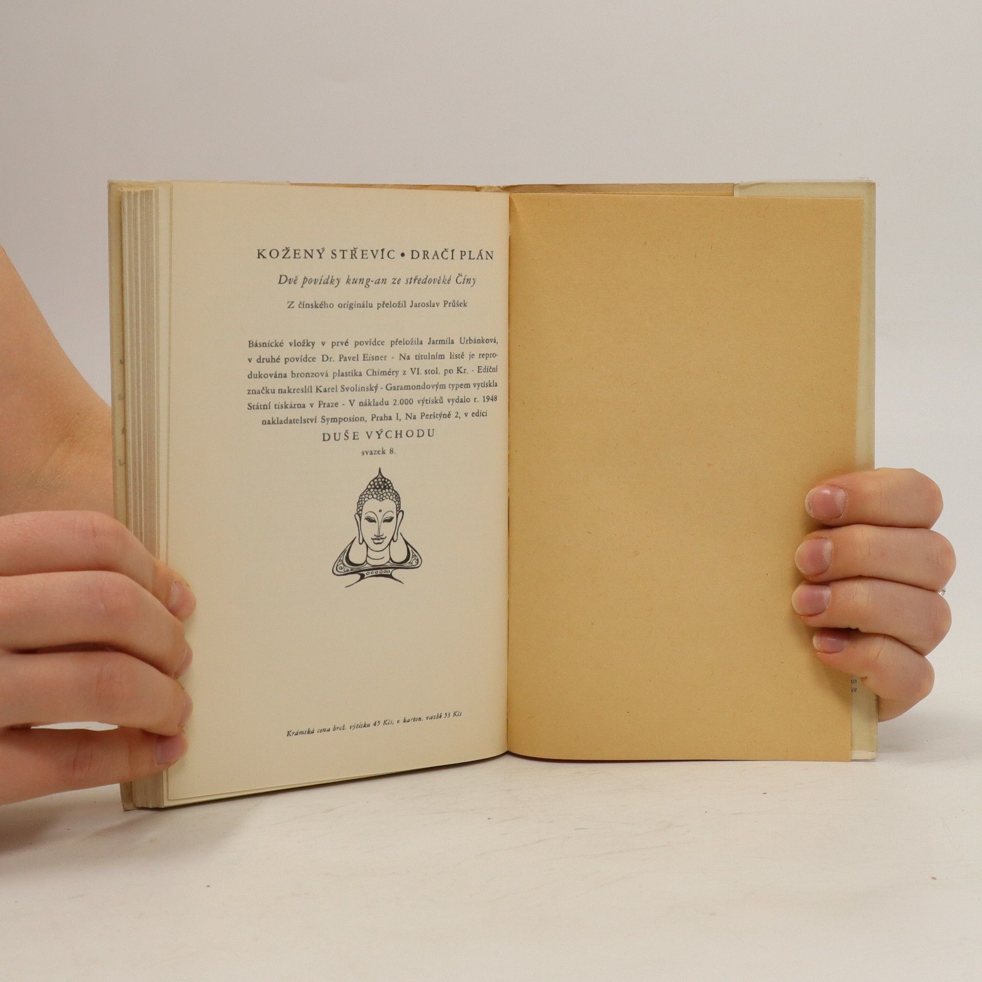Kožený střevíc: o tom, jak kožený střevíc byl jedinou stopou, která usvědčila boha Örh-langa. Příběh ze staré Číny - ze středověkého čínského originálu přeložil a doslovem opatřil Jaroslav Průšek, básnické vložky upravila Jarmila Urbánková, sedmi dřevoryty vyzdobil Stanislav Kolíbal.
