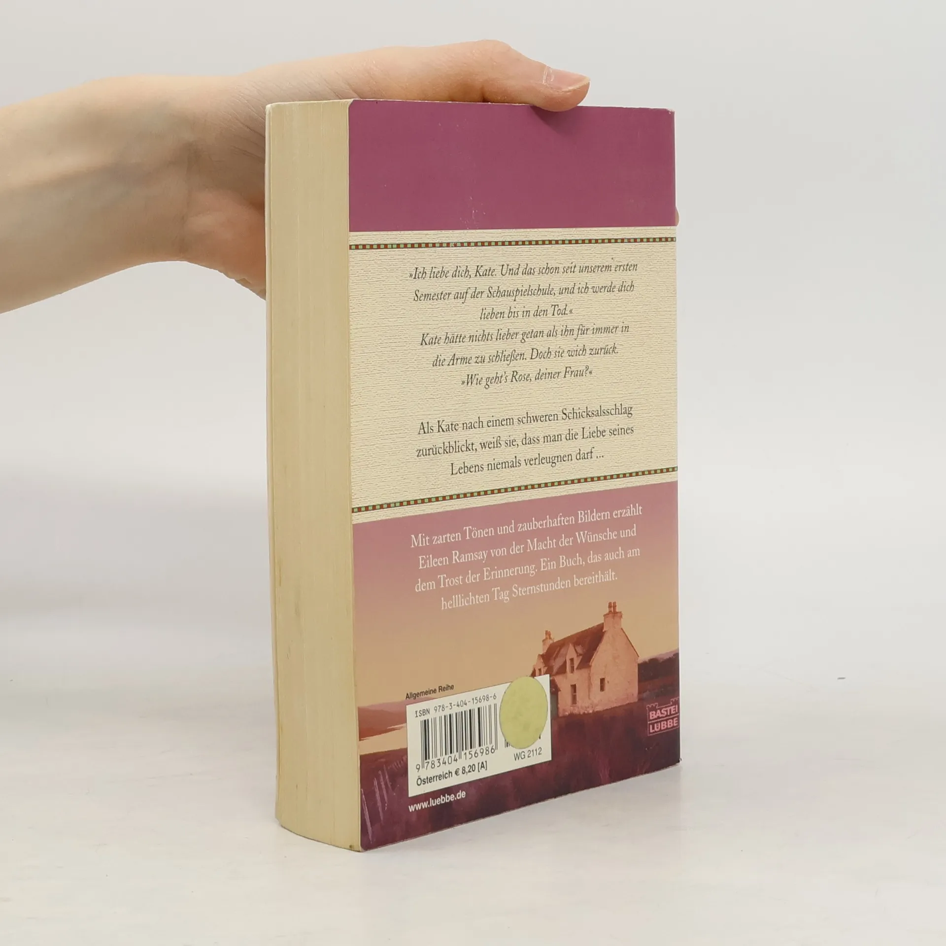 „Ich liebe dich, Kate. Und das schon seit unserem ersten Semester auf der Schauspielschule, und ich werde dich lieben bis in den Tod.“ Kate hätte nichts lieber getan als ihn für immer in die Arme zu schließen. Doch sie wich zurück. "Wie geht's Rose, deiner Frau?" Als Kate nach einem schweren Schicksalsschlag zurückblickt, weiß sie, dass man die Liebe seines Lebens niemals verleugnen darf ... Mit zarten Tönen und zauberhaften Bildern erzählt Eileen Ramsay von der Macht der Wünsche und dem Trost der Erinnerung. Ein Buch, das auch am helllichten Tag Sternstunden bereithält.