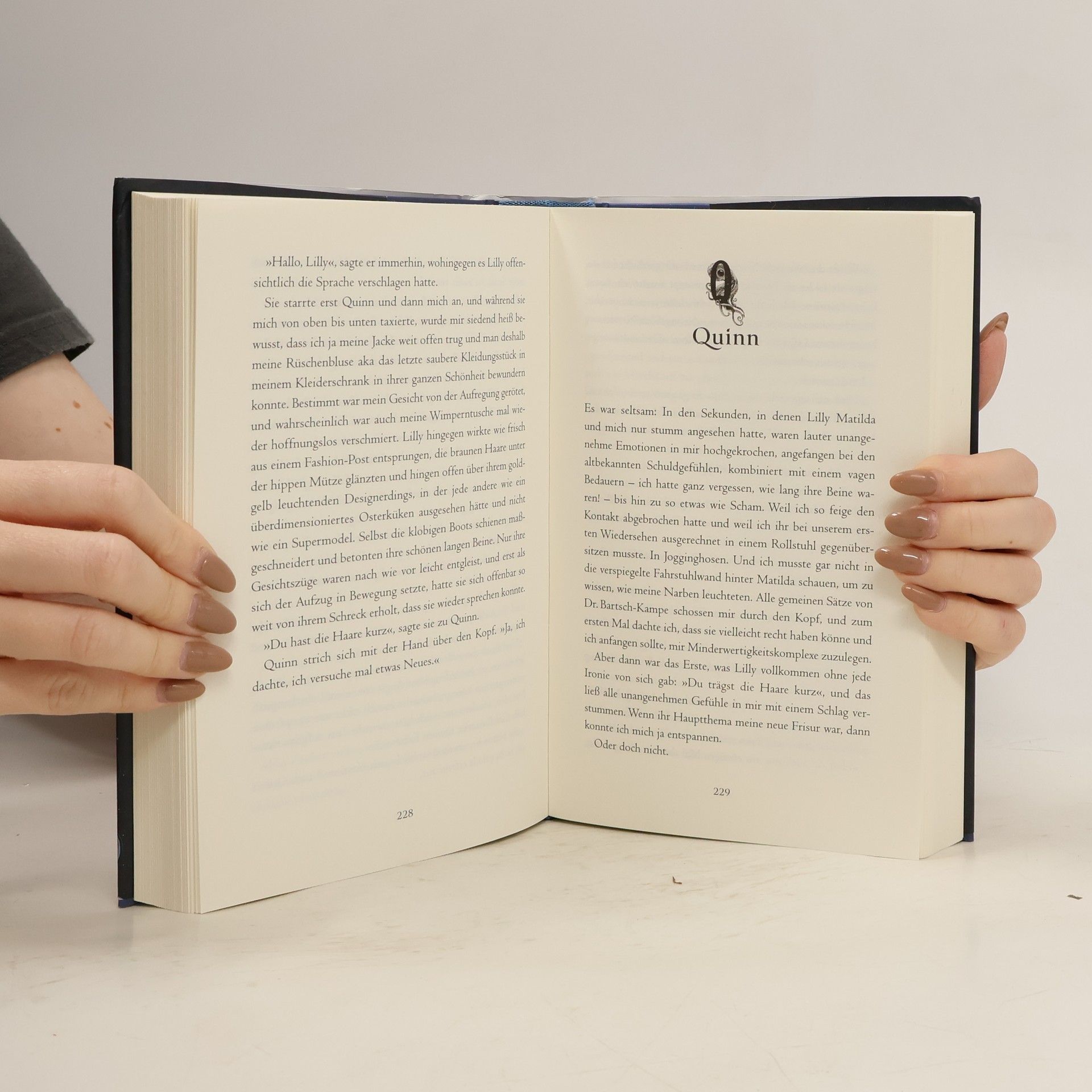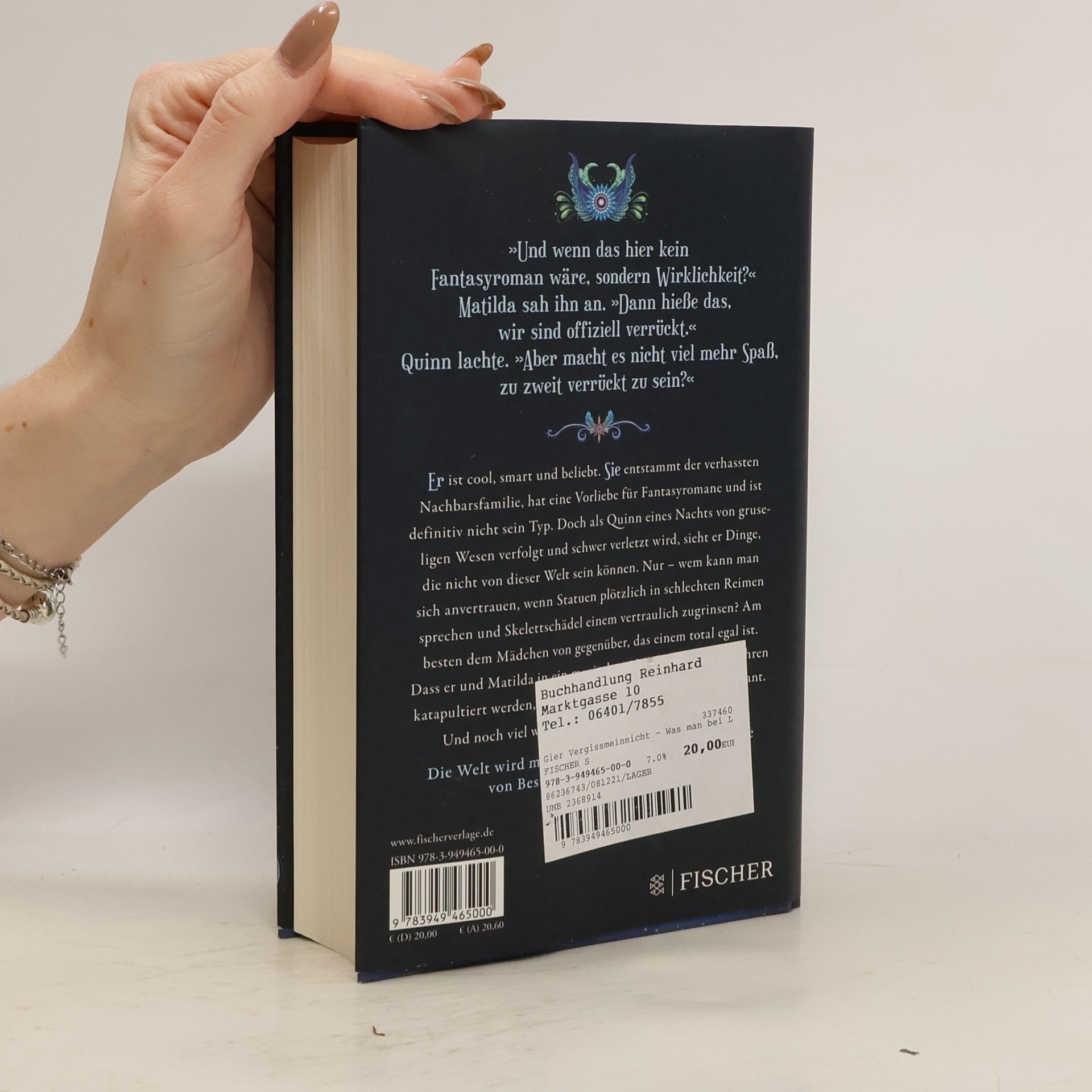 Bestsellerautorin Kerstin Gier öffnet uns nach der »Edelstein«- und der »Silber«-Trilogie die Tür zu einer neuen phantastischen Welt und erzählt eine mitreißende Liebesgeschichte aus zwei Perspektiven: Quinn ist cool, smart und beliebt. Matilda entstammt der verhassten Nachbarsfamilie, hat eine Vorliebe für Fantasyromane und ist definitiv nicht sein Typ. Doch als Quinn eines Nachts von gruseligen Wesen verfolgt und schwer verletzt wird, sieht er Dinge, die nicht von dieser Welt sein können. Nur – wem kann man sich anvertrauen, wenn Statuen plötzlich in schlechten Reimen sprechen und Skelettschädel einem vertraulich zugrinsen? Am besten dem Mädchen von gegenüber, das einem total egal ist. Dass er und Matilda in ein magisches Abenteuer voller Gefahren katapultiert werden, war von Quinn so allerdings nicht geplant. Und noch viel weniger, sich unsterblich zu verlieben …