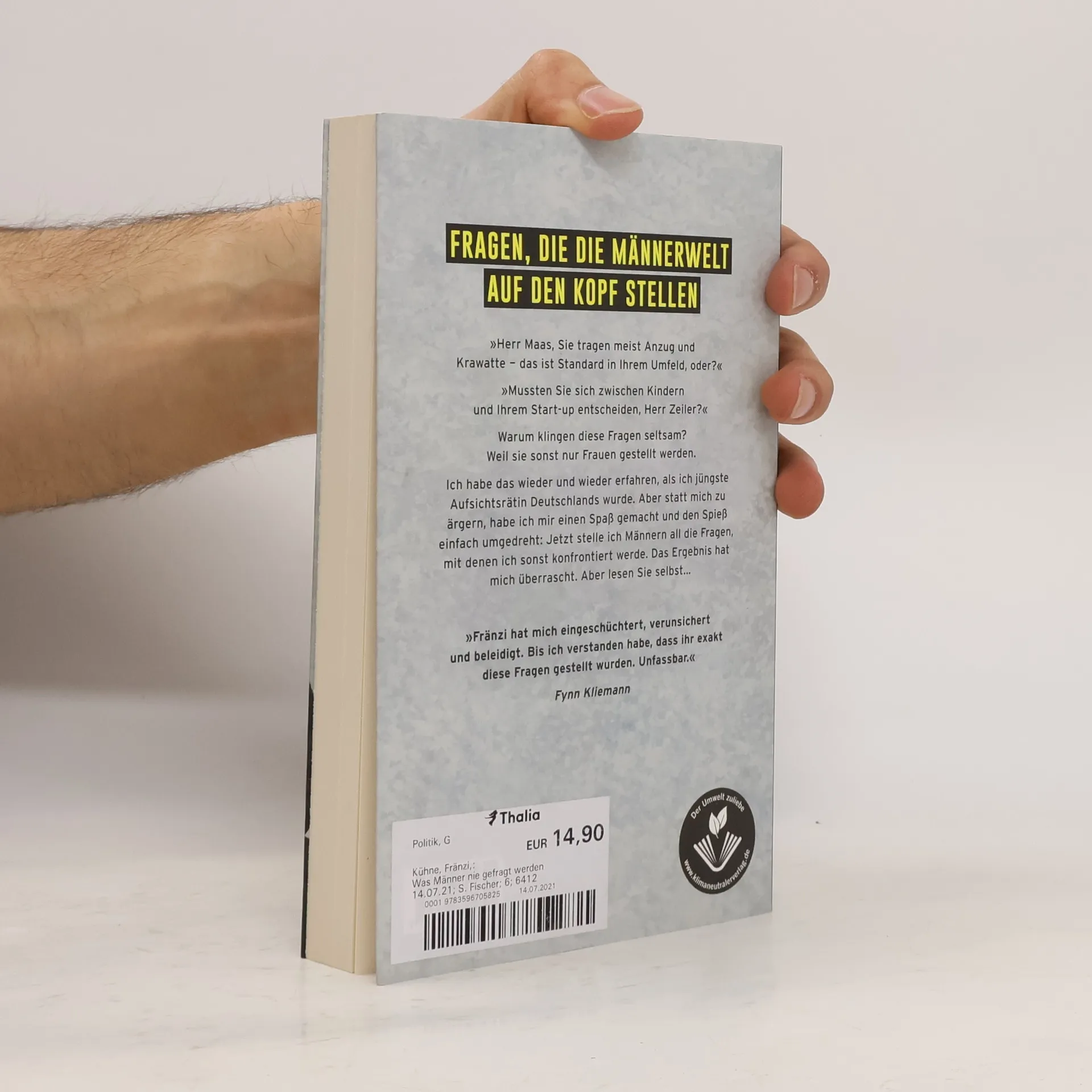 Aufsichtsrätin und Mutter Fränzi Kühne bietet eine überraschende und unterhaltsame Perspektive auf das, was in Sachen Gleichberechtigung immer noch falsch läuft. »Herr Maas, Sie tragen meist Anzug und Krawatte – das ist Standard in der Politik, oder?« »Mussten Sie sich zwischen Kindern und Ihrem Start-up entscheiden, Herr Zeiler?« Warum klingen diese Fragen seltsam? Weil sie sonst nur Frauen gestellt werden. Ich habe das am eigenen Leib erfahren, als ich jüngste Aufsichtsrätin Deutschlands wurde. Aber statt mich zu ärgern, habe ich mir einen Spaß gemacht und den Spieß einfach umgedreht: Jetzt stelle ich Männern all die Fragen, mit denen ich sonst konfrontiert werde. Das Ergebnis hat mich überrascht. Aber lesen Sie selbst… »Fränzi hat mich eingeschüchtert, verunsichert und beleidigt. Bis ich verstanden habe, dass ihr exakt diese Fragen gestellt wurden. Unfassbar.« Fynn Kliemann Fränzi fragt, diese Männer antworten: Jürgen Bornschein, Axel Bosse, Jörg Eigendorf, Rainer Esser, Holger Friedrich, Gregor Gysi, Lars Hellmeyer, Joe Kaeser, Friedrich Kautz, Fynn Kliemann, Frater Rafael Maria Klose, Heiko Maas, Christoph Mönnikes, Julian Otto alias Bausa, Christian Rach, Frank Thelen, Helmut Thoma, Ole von Beust, Jean-Remy von Matt, Frank-Peter Weiß, Peter Wittkamp und Waldemar Zeiler