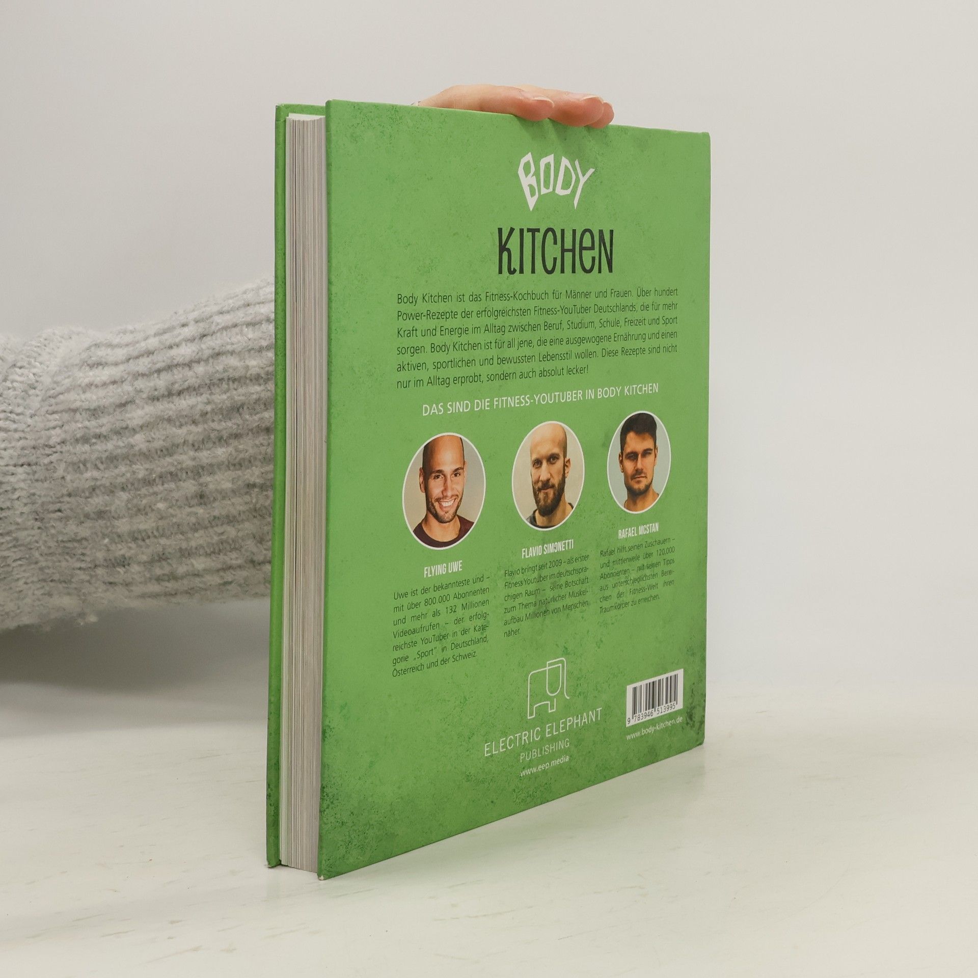Body Kitchen - Das Fitness-Kochbuch für Männer und Frauen. Über 100 Power-Rezepte der erfolgreichsten Fitness-YouTuber Deutschlands. Du willst Dich gesund ernähren und brauchst in Deinem Alltag Kraft und Energie? Body Kitchen - Das Fitness-Kochbuch ist für all jene geeignet, die eine ausgewogene Ernährung, einen aktiven und sportlichen Alltag, und ein bewusstes Leben anstreben. Die Rezepte kommen von Deutschlands erfolgreichsten Fitness-Youtubern. Athleten, die seit vielen Jahren professionell Sport treiben und einen stressigen Arbeitstag haben. Diese Fitness-Rezepte sind absolut lecker und im Alltag erprobt! In Body Kitchen präsentieren Flying Uwe, Flavio Simonetti und Rafael McStan die Fitness-Rezepte und -Ernährung, die sie seit Jahren durch ihren Sport- und Berufsalltag bringen. Die Rezepte, verbindet das Ziel, eine ästhetische und belastbare Physis und eine standhafte Psyche zu erreichen. Es sind die besten Fitness-Rezepte, zusammengesucht frei nach dem Motto: Das Sixpack wird in der Küche gemacht . In Body Kitchen - Das Fitness-Kochbuch findet ihr Low-Carb-, High-Carb- und High-Protein-Hauptgerichte wie: Pizza mit Blumenkohlboden, Vegane Carbonara mit Räuchertofu oder Süßkartoffel Kumpir. Außerdem gibt es Fitness-Rezepte für Zwischenmahlzeiten, Snacks, Shakes und Smoothies wie: selbstgemacht Proteinriegel, Pre- und Post-Workout Shakes und Smoothies, Cranberry-Nuss Raw-Bites, Low-Fat Bananenbrot, Fitness-Eis und viele mehr... Zu allen Fitness-Rezepten von Body Kitchen gibt es detaillierte Nährwertangaben und Variationen für aktive Köchinnen und Köche in der Diät oder dem Muskelaufbau, für Veganer oder Vegetarier und natürlich auch für Fleischesser. Body Kitchen eignet sich daher genauso gut als Leitfaden für eine Sport-Ernährung, wie als Ausgangspunkt der Kreation für Deinen eigenen Ernährungsplan. Alle Rezepte in Body Kitchen - Das Fitness-Kochbuch, lassen sich aus Zutaten kochen, die es im normalen Supermarkt gibt und ermöglicht wirklich jedem beachtliche Koch- und Backerfolge. Das Fitness-Kochbuch richtet sich an alle, die ein aktives Leben führen (wollen). Sie finden in diesem Buch Rezepte für ein bewusstes und ausgeglicheneres Leben zwischen Schule, Studium, Beruf und Freizeit, Alltag und Sport. Dabei ist das Buch für Frauen genauso geeignet wie für Männer im Muskelaufbau oder zum Abnehmen. Was alle Leser dieses Buchs verbindet, ist ihr Interesse an einer gesunden und praktischen, leckeren und einfachen Ernährung. Neben den Rezepten erfahren Leser mehr über die Ernährungs- und Fitnessphilosophie von Kampfsportler Flying Uwe, Natural Body-Builder Flavio Simonetti und Kraftsportler Rafael McStan und erhalten so Einblicke in die alltagserprobten Routinen der Profisportler. Body Kitchen - Das Fitness-Kochbuch für Frauen und Männer beantwortet folgende Fragestellungen: - Welches sind die besten Fitness Rezepte für eine gesunde Sport-Ernähung - Wie ernähre ich mich im Muskelaufbau als Frau bzw. als Mann - Was sind passende Ernährung und Fitness-Rezepte für Kraftsportler und für Sportler - Abnehmen ohne Hunger mit Sport und trotz Essen