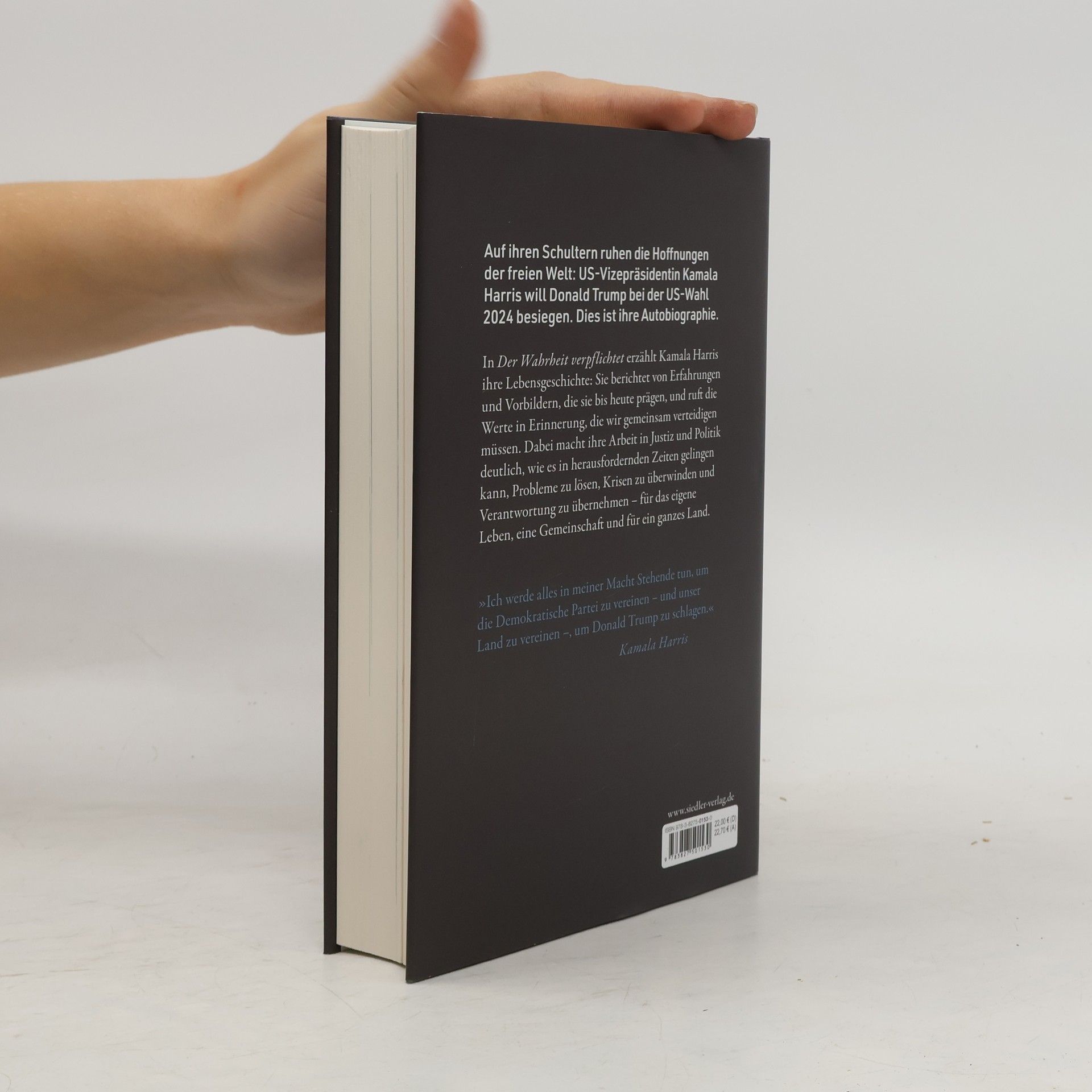»Ich werde alles in meiner Macht Stehende tun, um die Demokratische Partei zu vereinen - und unser Land zu vereinen -, um Donald Trump zu besiegen.« (Kamala Harris) Auf ihren Schultern ruhen die Hoffnungen der freien Welt: Nach dem Verzicht von US-Präsident Joe Biden auf eine weitere Amtszeit wird Kamala Harris die Frau sein, die gegen Donald Trump bei der US-Wahl 2024 antritt. Wie keine zweite Politikerin steht sie für Freiheit und Gerechtigkeit. In dieser Autobiographie erzählt sie inspirierend und zutiefst persönlich ihre beeindruckende Lebensgeschichte und schildert, welche Werte uns verbinden. Als erste Frau und erste Schwarze hat Kamala Harris das Amt der Vizepräsidentin der Vereinigten Staaten in jener historischen Zeit verkörpert, in der das Land gespalten ist wie nie zuvor. Wer ist diese Frau, die die Politik der USA in den letzten vier Jahren maßgeblich mitgeprägt hat? Was treibt sie an? In diesem Buch erzählt Kamala Harris die Geschichte ihres unwahrscheinlichen Lebenswegs als Tochter einer indischen Einwanderin und eines Jamaikaners, die sich zur Justizministerin Kaliforniens hocharbeitete – und schon als Staatsanwältin dem Ziel sozialer Gerechtigkeit verschrieb. Sie nahm den Kampf mit Banken und Big Business auf, um die einfachen Bürger zu schützen, sie bekämpfte den Rassismus in der Strafverfolgung und trieb konsequent eine Reform des Justizwesens voran. Ihre Lebensgeschichte ruft immer wieder die grundlegenden Werte von Freiheit, Toleranz und Gerechtigkeit in Erinnerung, die heute so sehr in Gefahr geraten sind. Das beeindruckende Zeugnis einer klugen und charismatischen Politikerin – und die bewegende Geschichte einer Frau, auf deren Schultern die Hoffnung einer ganzen Nation ruhen. Mit 32 Seiten Farbbildteil