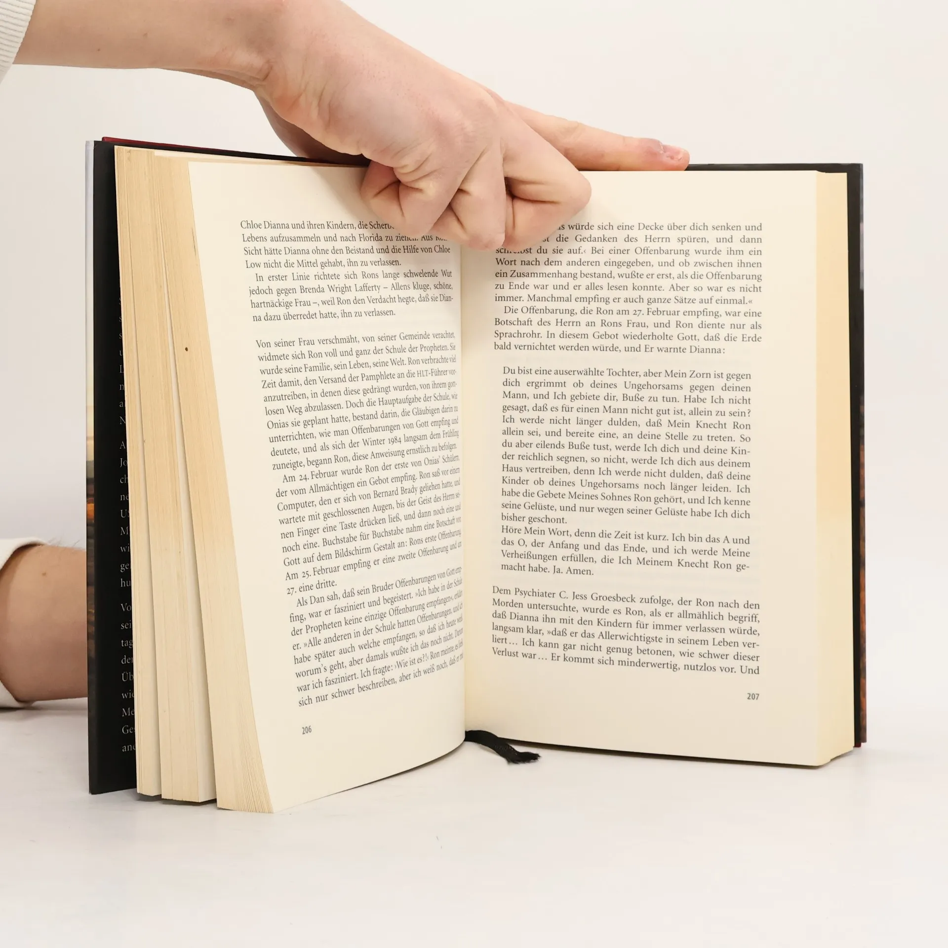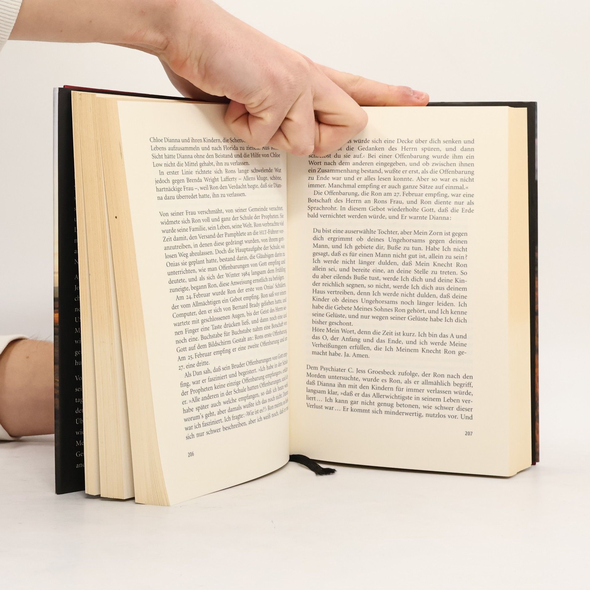 Als Allen Lafferty am Abend des 24. Juli 1985 nach Hause kam, war die Haustür abgeschlossen, und drinnen plärrte der Fernseher. Wenig später fand er seine Frau Brenda auf dem Küchenfußboden liegend - mit durchgeschnittener Kehle. Seine Tochter Erica lag reglos und blutüberströmt in ihrem Kinderbettchen. Ausgehend von diesem grausigen Doppelmord, zu dem sich Allens Brüder Ron und Dan Lafferty bekannten, untersucht Jon Krakauer den Ursprung religiösen Fanatismus. Die Laffertys sind Mormonen aus Utah, und ihr Prophet verbietet ihnen Fernseher und Zeitungen, Musik und Alkohol. Den Auftrag zu diesem Mord jedoch haben sie von Gott bekommen. Jon Krakauer schildert die Geschichte dieser erst 170 Jahre alten Religion. Mit heute elf Millionen Mitgliedern werden die Mormonen bis zum Ende dieses Jahrhunderts eine der größten Religionsgemeinschaften der Erde sein. Diese glänzende Reportage zeigt, wie bedrohlich es sein kann, wenn Menschen glauben, einen direkten Draht zu Gott zu haben.