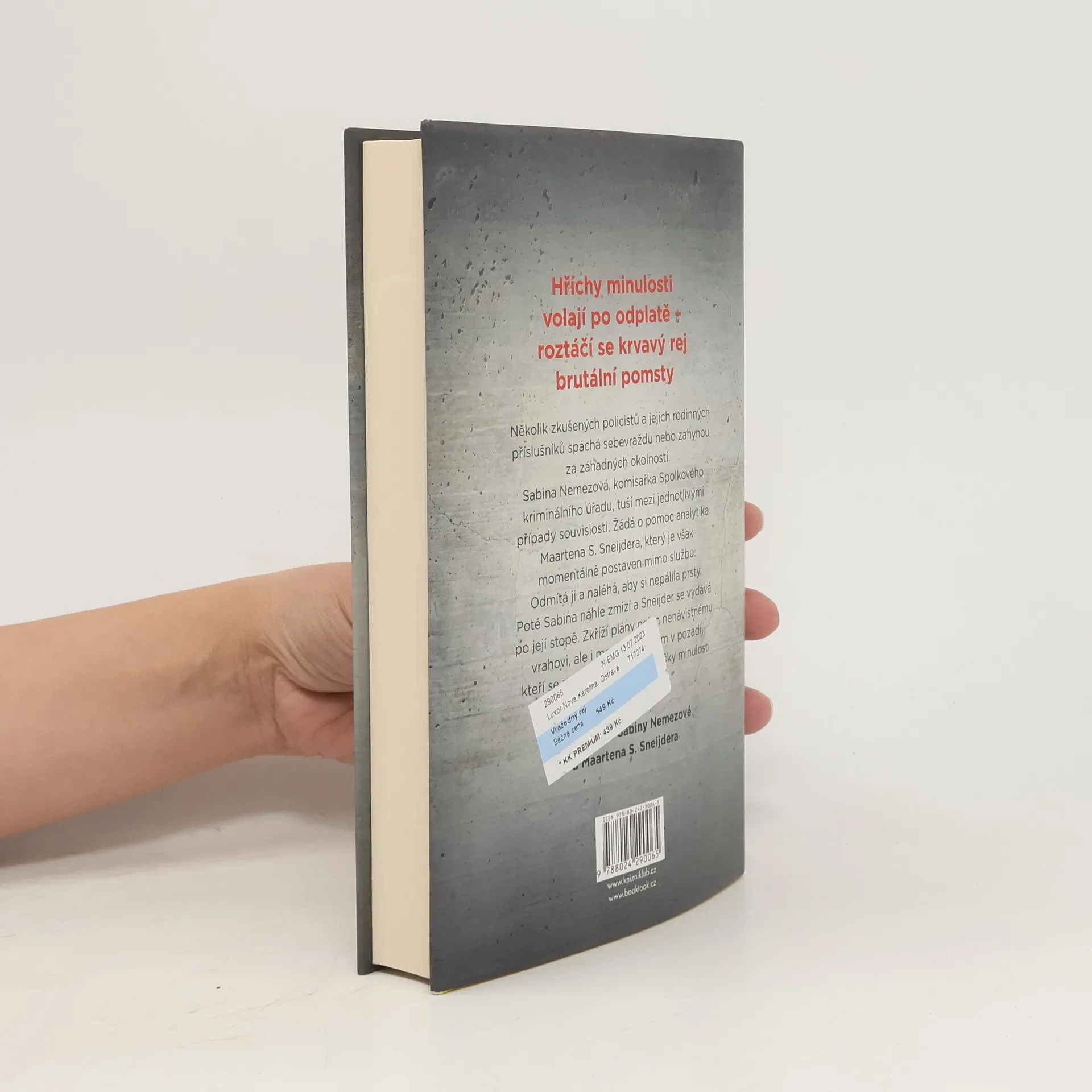 Sneijder a Nemez znovu vyšetřují.Poté, co řada kolegů spáchala sebevraždu brutálním způsobem, začne být Sabine Nemez – inspektorka a školitelka BKA – podezřelá. Mnohé ukazuje na desítky let staré spiknutí a oběť hnanou pomstou. Sabine požádá o pomoc svého bývalého kolegu, suspendovaného profilera Maartena S. Sneijdera. Ten odmítá spolupracovat s varováním kolegů, aby se případem přestal zabýval. Pak Sabine beze stopy zmizí a Sneijder sám zasáhne. Do cesty se staví nejen nenávistnému vrahovi, ale i jeho bývalým přátelům a kolegům, kteří by udělali cokoliv, aby hříchy ze své minulosti jednou provždy smazali...Čtvrtý případ pro Sneijdera a Nemez.