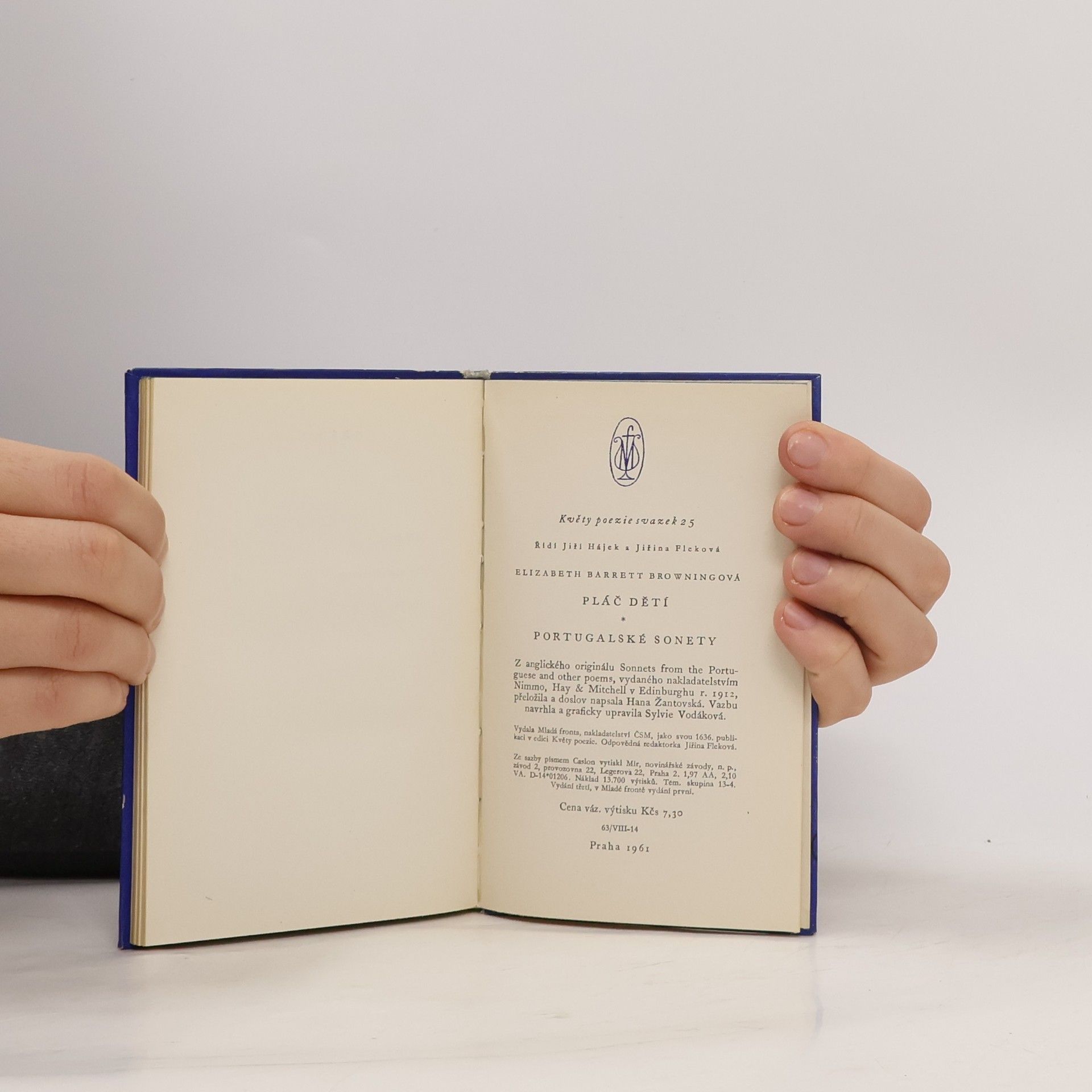 Vrcholná milostná poezie anglické básnířky Elizabeth Barrettové-Browningové. Anglická básnířka Elizabeth Barrettová-Browningová náležela v první polovině 19. století k těm ženám, které se účastnily prvních emancipačních snah. V roce 1844 vyšly její sebrané básně ve dvou svazcích.Po jejich uveřejnění obdržela dopis mladého básníka Roberta Browninga, jehož tvorby si velmi vážila, a po výměně několika dopisů se oba básníci do sebe zamilovali. Po tajném sňatku dala Elizabeth svému muži přečíst 44 sonetů, které byly vyjádřením jejího citu k němu. Na manželův nátlak vyšly jako překlady z portugalštiny, aby byla zachována intimita jejich lásky. - Báseň "Pláč dětí" je rozhořčeným protestem proti otrocké dětské práci v anglických továrnách počátkem 19. století.