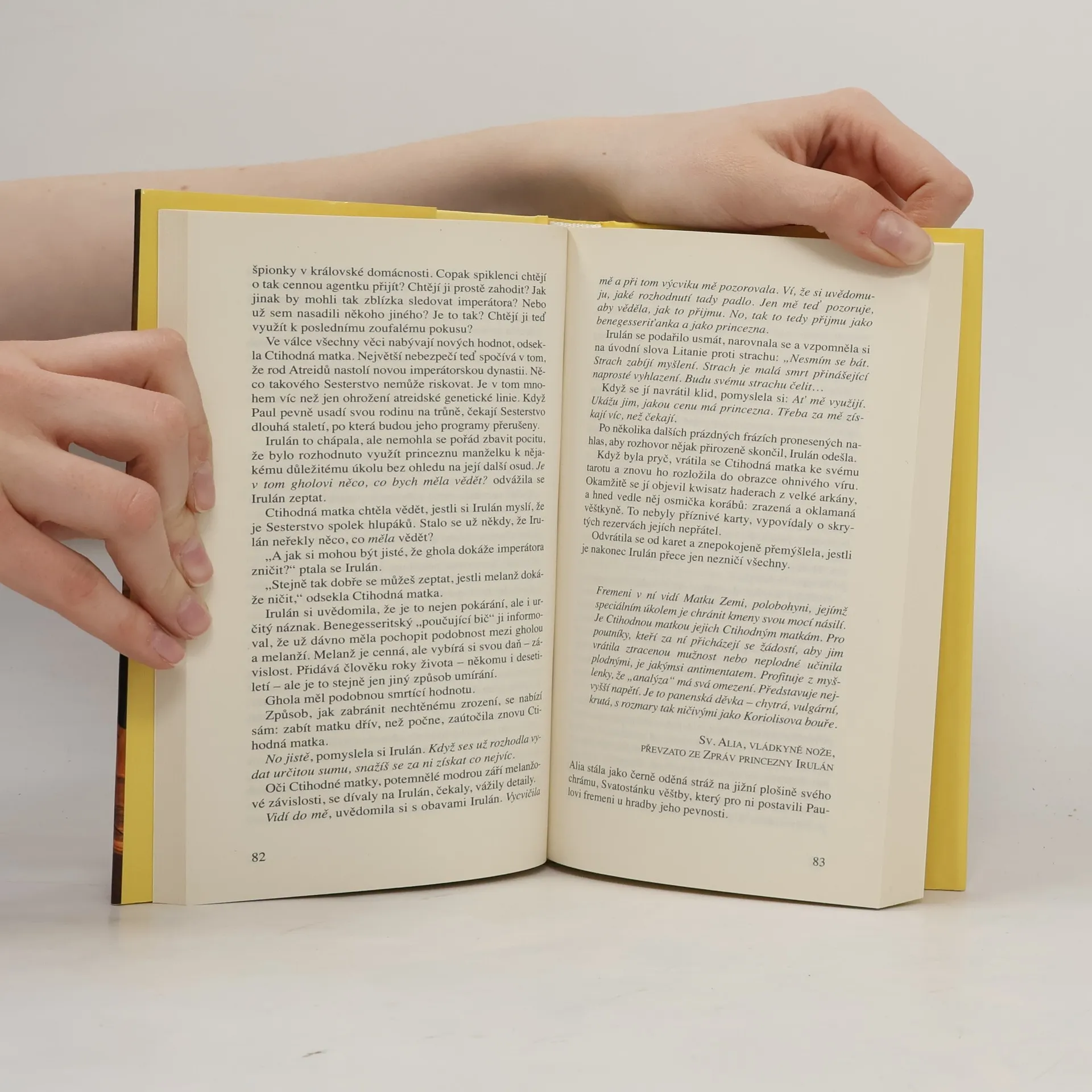 Paul Atreides, zvaný teď převážně Muad'dib, je absolutním pánem světa – a zároveň obětí své vlastní předzvěstné schopnosti, která z něj v očích jeho poddaných udělala boha. Na Arrakis přijíždějí tisíce poutníků, aby se poklonili novému spasiteli a jeho sestře Alii. Fremenská vojska šíří vesmírem hrůzu a zkázu a ničí všechno a všechny, kdo se Paulovi postaví do cesty. Bývalé mocnosti, dnes do značné míry zbavené své moci, se ale nehodlají jen tak vzdát: Bene Gesserit, Gilda a Tleilaxané připravují tajné spiknutí proti božskému vládci – a silného spojence mají v jeho vlastní domácnosti: Paulovu manželku Irulán, dceru bývalého vládce Shaddama, která svému manželovi trpce vyčítá, že s ní nechce mít děti. Na scénu vstupuje tajná zbraň – ghola Hayt, Tleilaxany znovuoživený Duncan Idaho, který přináší svému staronovému vládci zkázu.