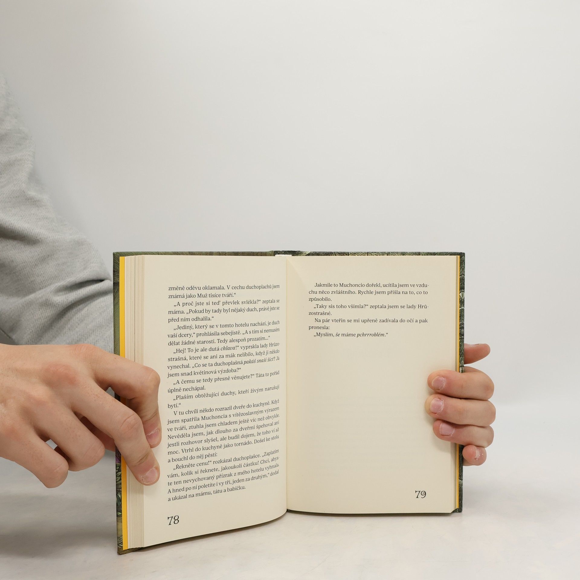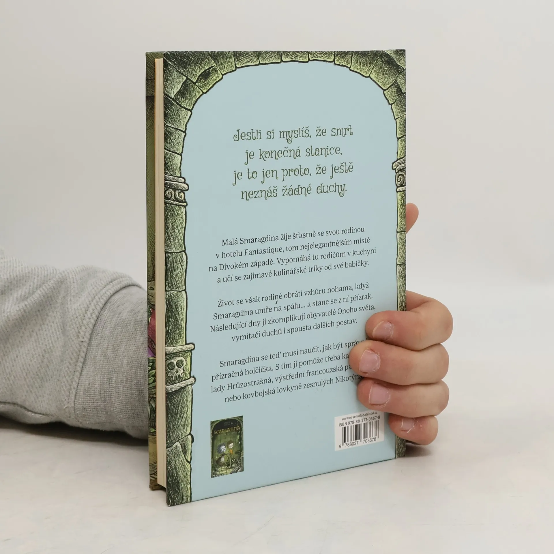 Jestli si myslíš, že smrt je konečná stanice, je to jen proto, že ještě neznáš žádné duchy. Malá Smaragdina žije šťastně se svou rodinou v Hotelu Fantastique, tom nejelegantnějším místě na Divokém západě, vypomáhá rodičům v kuchyni a učí se kulinářské triky od své babičky, světoznámé kuchařky přezdívané Obryně.Život se však rodině obrátí vzhůru nohama, když Smaragdina zemře na spálu… a stane se z ní přízrak. Následující dny jí pěkně zkomplikují obyvatelé Onoho světa, vymítači duchů z Tohoto světa i spousta dalších legračních postav.Taky jí ale pomůžou přijmout její smrt s humorem. Smaragdina se musí naučit, jak být správná přízračná holčička. Pomůže jí s tím třeba její kamarádka lady Hrůzostrašná, výstřední francouzská pavoučice, nebo kovbojská lovkyně zesnulých Nikotýna. Přesně takový je druhý díl knihy Scarlatina, zesnulá kuchařka.