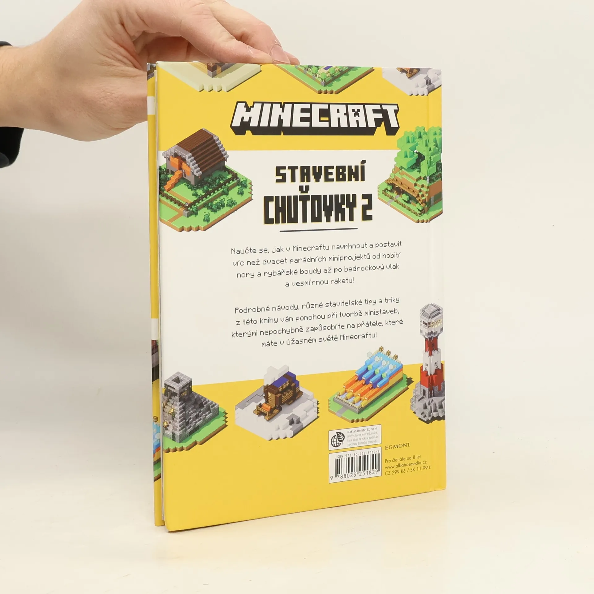 Naučte se, jak v Minecraftu navrhnout a postavit víc než dvacet parádních miniprojektů od hobití nory a rybářské boudy až po bedrockový vlak a vesmírnou raketu!