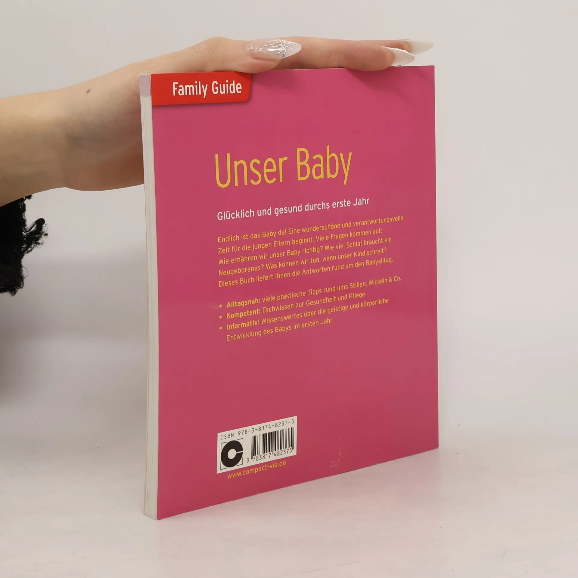 Endlich ist das Baby da! Eine wunderschöne und verantwortungsvolle Zeit beginnt für die jungen Eltern. Dabei kommen viele Fragen auf: Wie ernähren wir unser Baby richtig? Wie viel Schlaf braucht ein Neugeborenes? Was können wir tun, wenn unser Kind schreit? Dieser Ratgeber aus der Reihe 'Family Guide' unterstützt Sie in den ersten 12 Monaten Ihres Kindes und gibt praktische Hilfestellung in allen Situationen. - viele praktische Tipps rund ums Stillen, Wickeln & Co. - Fachwissen zur Gesundheit und Pflege Ihres Babys - Wissenswertes über die geistige und körperliche Entwicklung des Babys im ersten Jahr - Hilfestellung in Problemsituationen - Beschäftigungstipps für eine optimale und glückliche Entwicklung