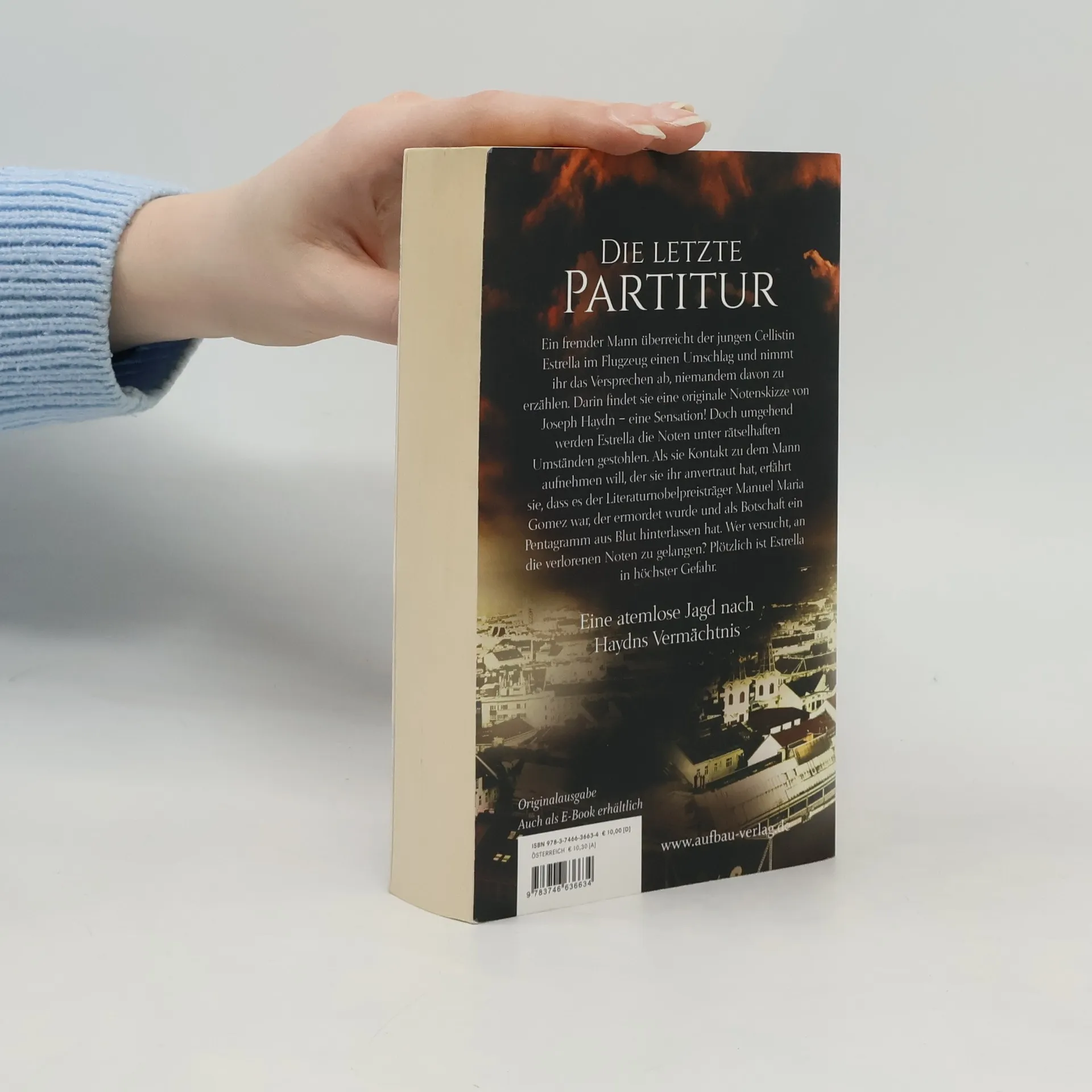 Die letzte Partitur. Ein fremder Mann überreicht der jungen Cellistin Estrella im Flugzeug einen Umschlag und nimmt ihr das Versprechen ab, niemandem davon zu erzählen. Darin findet sie eine originale Notenskizze von Joseph Haydn – eine Sensation! Doch umgehend werden Estrella die Noten unter rätselhaften Umständen gestohlen. Als sie Kontakt zu dem Mann aufnehmen will, der sie ihr anvertraut hat, erfährt sie, dass es der Literaturnobelpreisträger Manuel Maria Gomez war, der ermordet wurde und als Botschaft ein Pentagramm aus Blut hinterlassen hat. Wer versucht, an die verlorenen Noten zu gelangen? Plötzlich ist Estrella in höchster Gefahr – denn sie ist die Einzige, die deren Inhalt kennt. Eine atemlose Jagd nach Haydns Vermächtnis