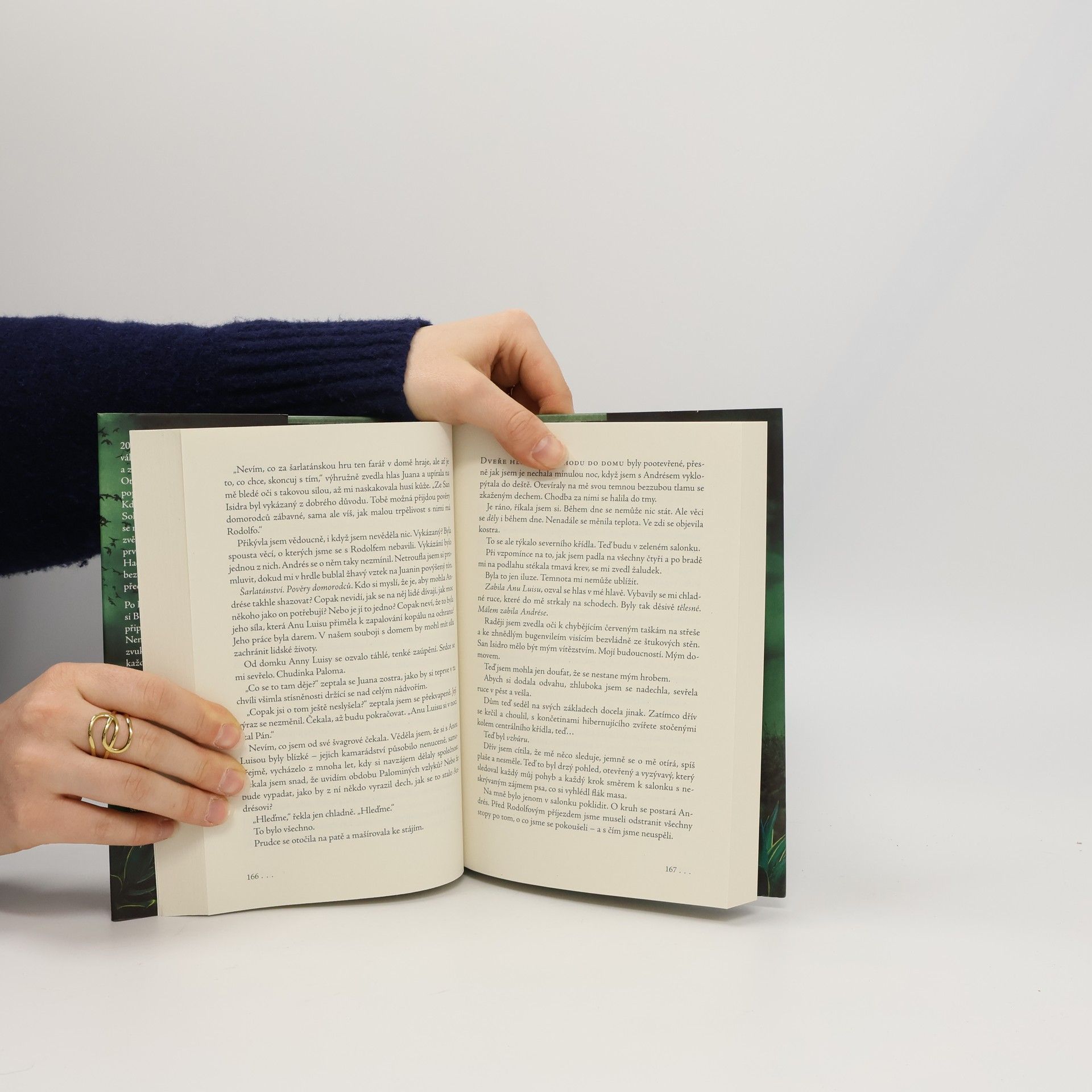 Napínavý román o strašidelném panství uprostřed agávových polí20. léta 19. století. V Mexiku končí válka za nezávislost na Španělsku a z císařství se stává republika. Otce mladé Beatriz během povstání popravili a její rodný dům vypálili. Když ji pak pohledný don Rodolfo Solórzano požádá o ruku, Beatriz se rozhodne, že nebude naslouchat zvěstem o náhlém úmrtí jeho první manželky, a nabídku přijme. Hacienda San Isidro ovšem není bezpečným útočištěm, jaké si představovala.Po Rodolfově odjezdu za prací si Beatriz v pustém domě začne připadat jako v děsivém snu. Nemůže spát. Ruší ji podivné zvuky a živé obrazy. Cítí, že ji na každém kroku něco pronásleduje. Manželova sestra Juana se jejím obavám vysmívá. Proč ale sama odmítá v noci vstoupit do domu? Proč kuchařka zapaluje kopálové kadidlo? A jak skutečně zemřela první doňa Solórzano? Beatriz ví s jistotou jen jedno – s haciendou je něco v nepořádku.S žádostí o pomoc se obrátí na mladého kněze Andrése, kterému jeho domorodá babička předala užitečné schopnosti. Budou však stačit na to, aby Beatriz, která ho nebezpečně přitahuje, ochránil a porazil temné síly, které haciendu zcela ovládly?