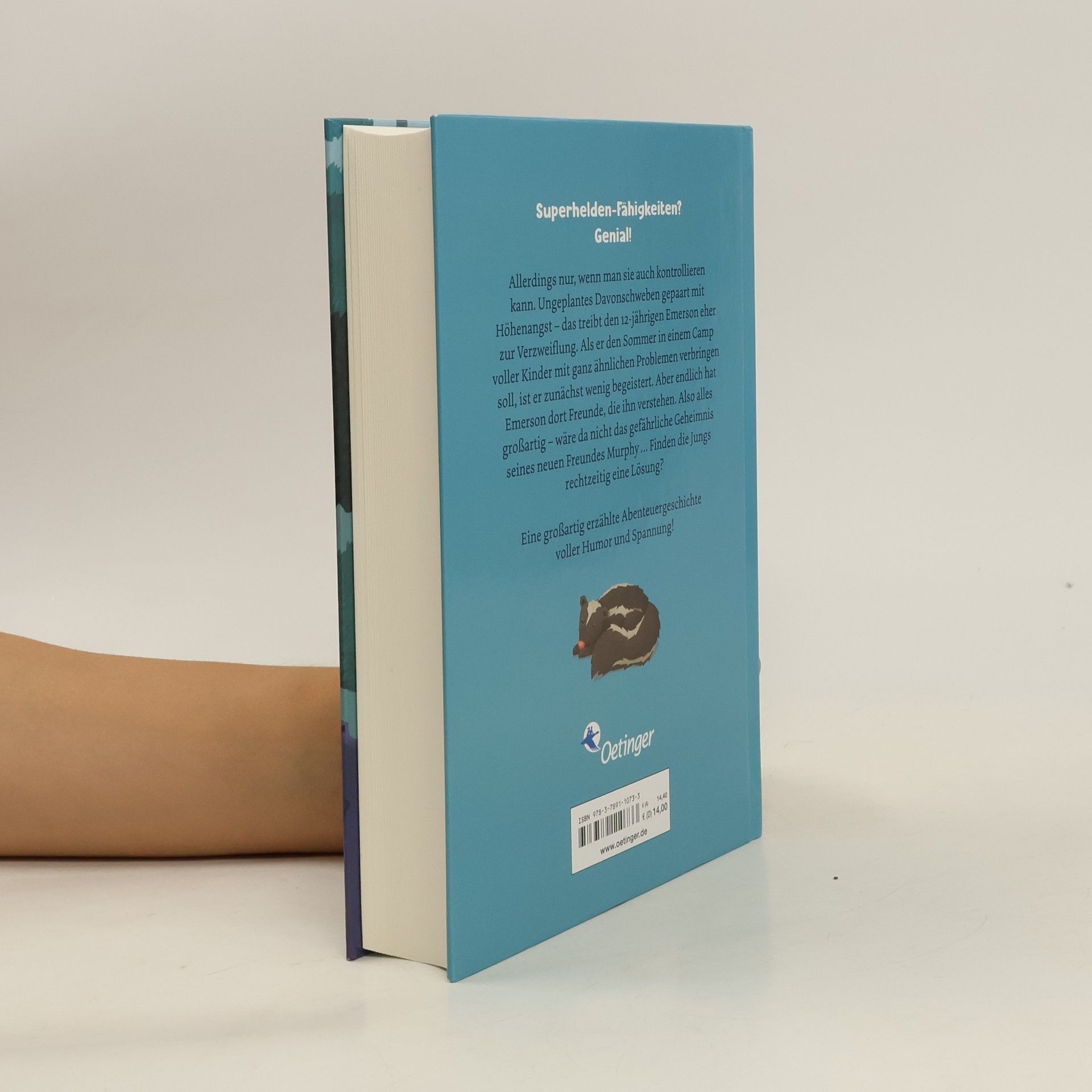 Hilfe, ich kann schweben! Superkräfte außer Rand und Band Der zwölfjährige Emerson kann schweben, nur leider hat er seine Begabung nicht wirklich im Griff. Kein Problem: Im Sommercamp trifft er auf jede Menge andere Kinder mit unkontrollierbaren Superhelden-Fähigkeiten. Und im Vergleich zu plötzlicher Unsichtbarkeit, spontaner Entflammbarkeit und unvorhersehbarer Zeitreise hat es Emerson sogar noch ganz gut getroffen. Zudem findet er Freunde, die ihn verstehen. Gemeinsam können die Jungs jedes Rätsel lösen und jedes Abenteuer bestehen!