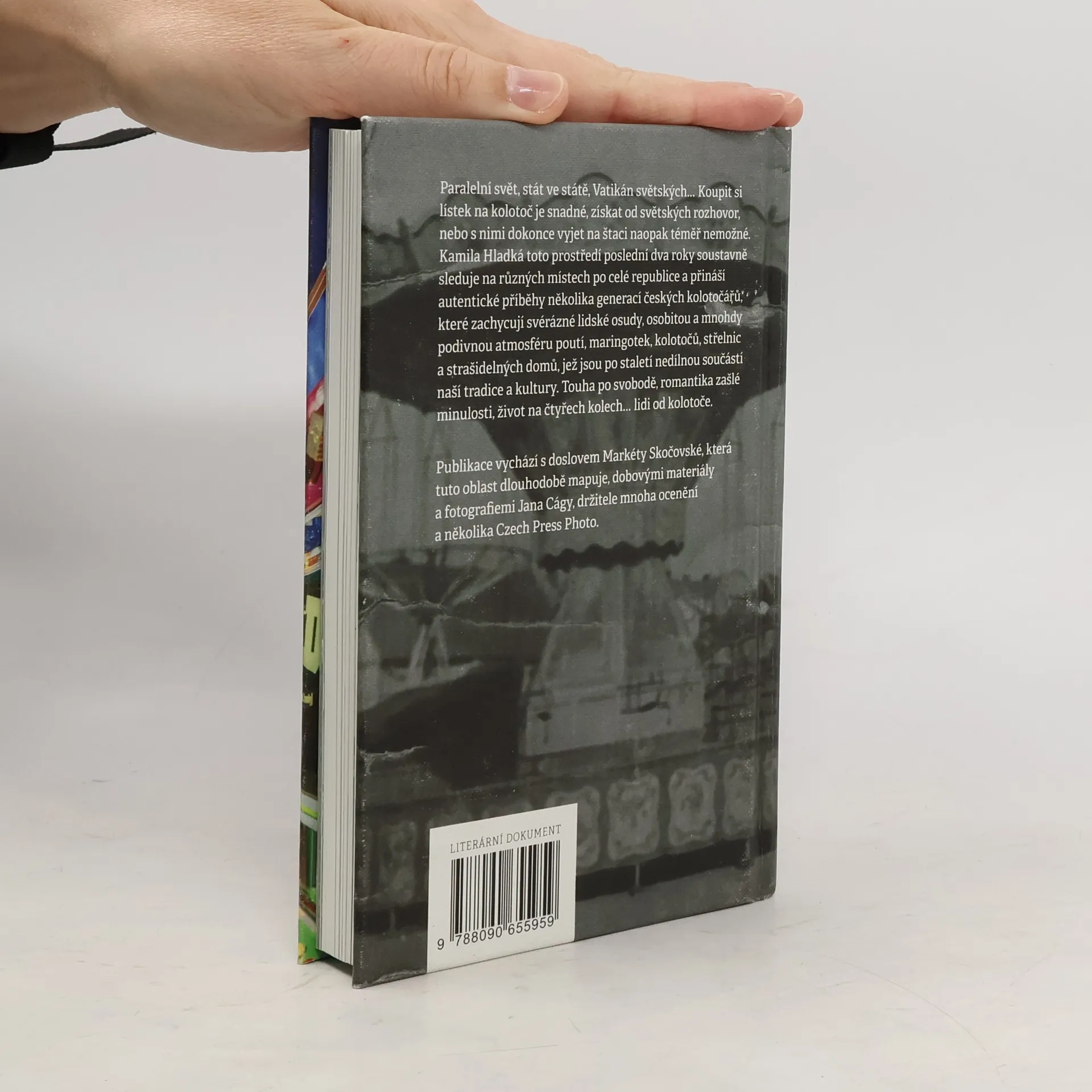 Paralelní svět, stát ve státě, Vatikán světských… Koupit si lístek na kolotoč je snadné, získat od světských rozhovor, nebo s nimi dokonce vyjet na štaci naopak téměř nemožné. Kamila Hladká toto prostředí poslední dva roky soustavně sleduje na různých místech po celé republice a přináší autentické příběhy několika generací českých kolotočářů, které zachycují svérázné lidské osudy, osobitou a mnohdy podivnou atmosféru poutí, maringotek, kolotočů, střelnic a strašidelných domů, jež jsou po staletí nedílnou součástí naší tradice a kultury. Touha po svobodě, romantika zašlé minulosti, život na čtyřech kolech… lidi od kolotoče. ***** Publikace vychází s doslovem Markéty Skočovské, která tuto oblast dlouhodobě mapuje, dobovými materiály a fotografiemi Jana Cágy, držitele mnoha ocenění a několika Czech Press Photo.