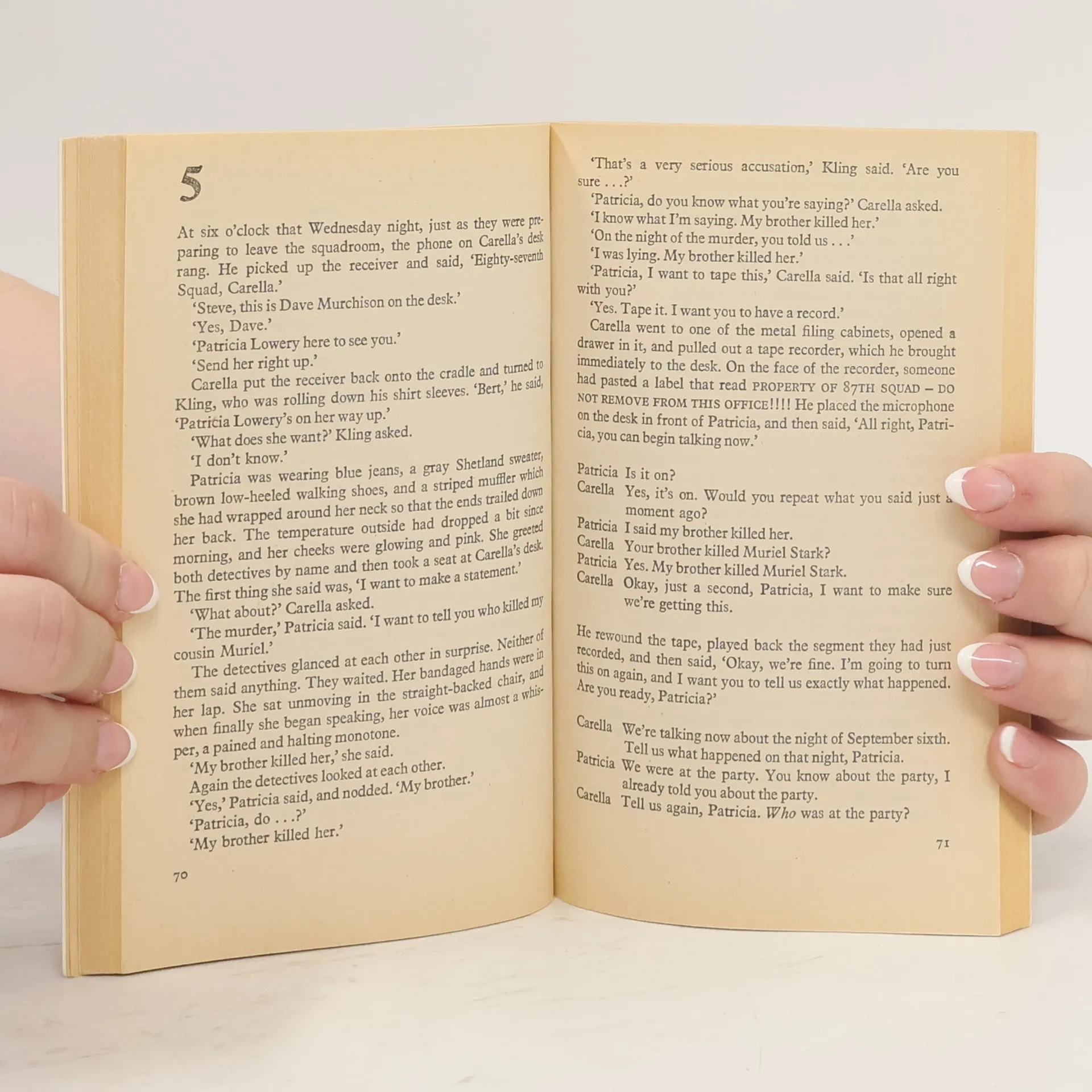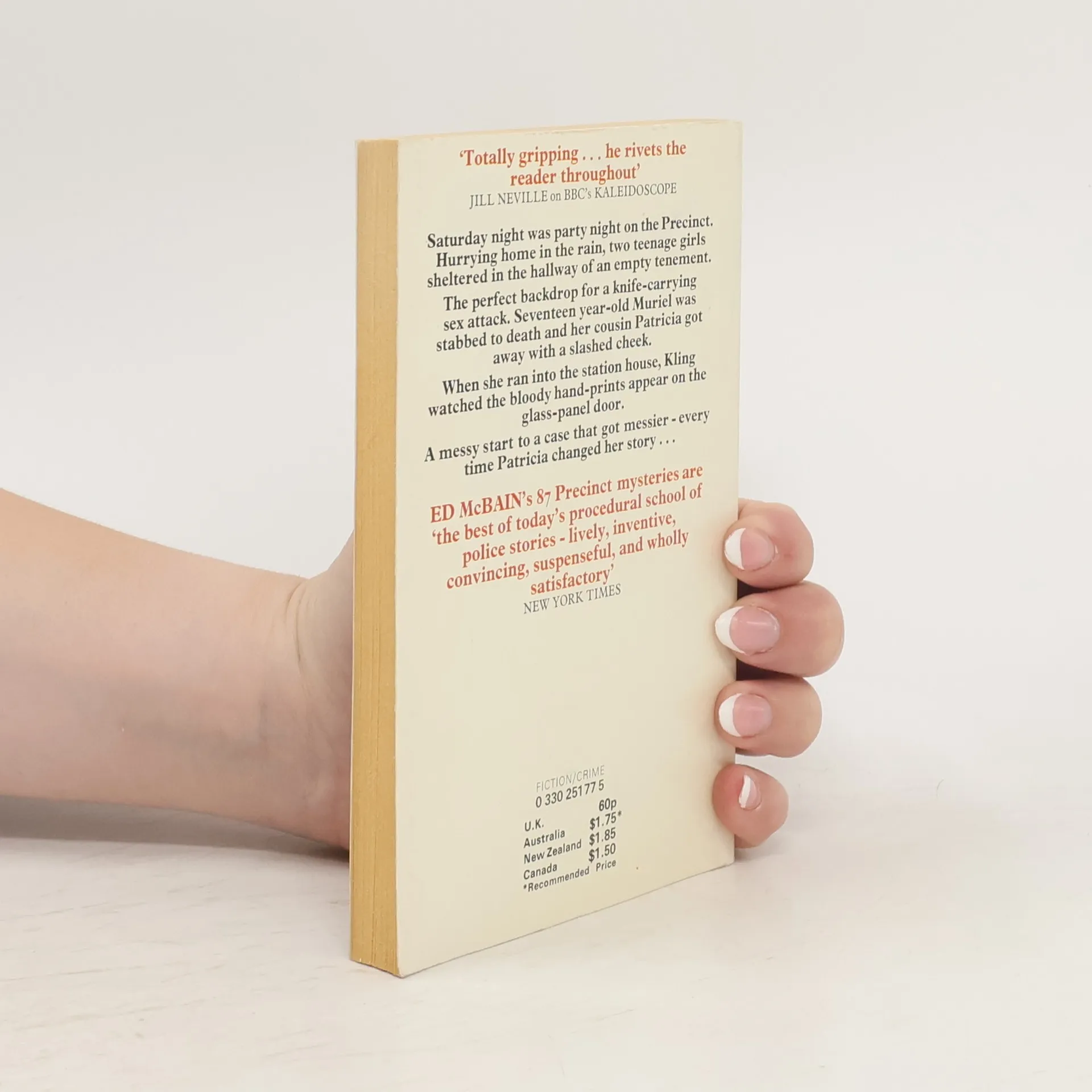 "Bloody palmprints. He would always remember seeing first the bloody prints, one on each side of the glass-paneled doors. And then the doors swinging open and the girl spilling into the room. Arms wide, hands imploring . . . blue dress torn open over white blood-smeared bra, she lurched toward the muster desk, beseeching Kling to help, for God's sake, help." The girl was Patricia Lowery, fifteen years old. She was the lucky one. Soon after, they found her cousin, Muriel Stark, seventeen, lying in a doorway, her body ripped with knife wounds. Hysterically, Patricia talked to Detectives Steve Carella and Bert Kling of the 87th Precinct, telling her brutal story of molestation and murder. The man was tall, dark-haired, blue-eyed, she said; he had a knife blade four inches long, she would never forget what he looked like, what he made them do. Immediately, Kling and Carella set out to find the killer, launching interrogations, file searches, laboratory analyses -- all the weapons of investigation at their command. The twisting, blood-spotted trail leads them deep into the warped world of the sex offender. Then, click. Tall, dark hair, blue eyes, phony alibi. And a positive identification from Patricia: "I said I'd never forget." There's only one problem. He's the wrong man.