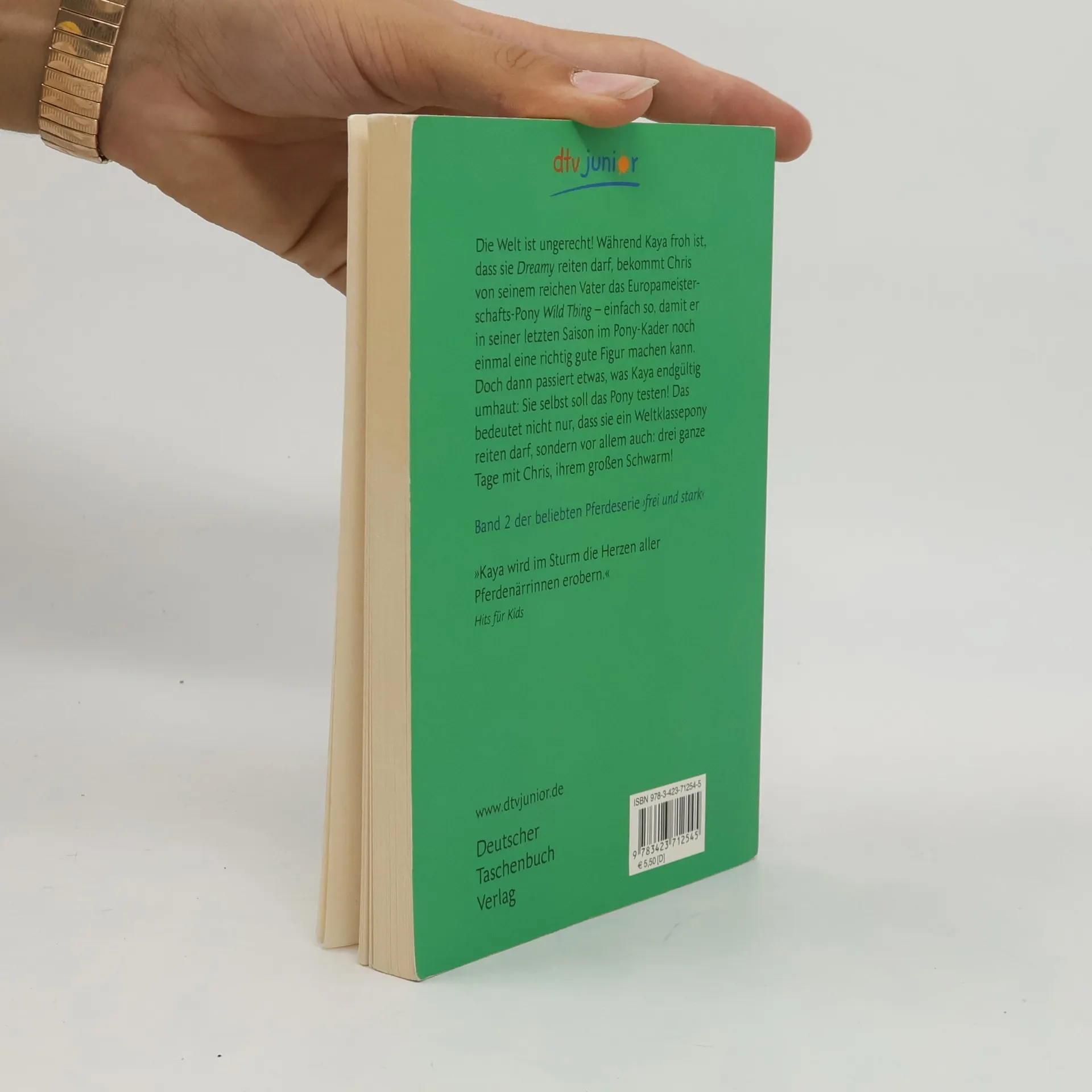 Mein Gott, die Welt ist ungerecht! Während Kaya froh ist, dass sie Dreamy reiten darf, überrascht sie dessen Besitzer, Herr Waldmann, mit einer wirklich fulminanten Nachricht: Er hat beschlossen, für seinen Sohn ein Pony zu kaufen – ein richtiger Kracher soll es sein, damit der 15-jährige Chris in seinem letzten Jahr im Ponykader noch einmal so richtig groß rauskommt. Das sagt sich leicht, wenn man so reich ist wie Familie Waldmann! Doch dann passiert etwas, das Kaya endgültig umhaut: Sie selbst soll mitfahren und das Pony Wild Thing begutachten – das bedeutet nicht nur den Ritt auf einem Weltklassepony, sondern vor allem drei Tage mit Chris, ihrem großen Schwarm!