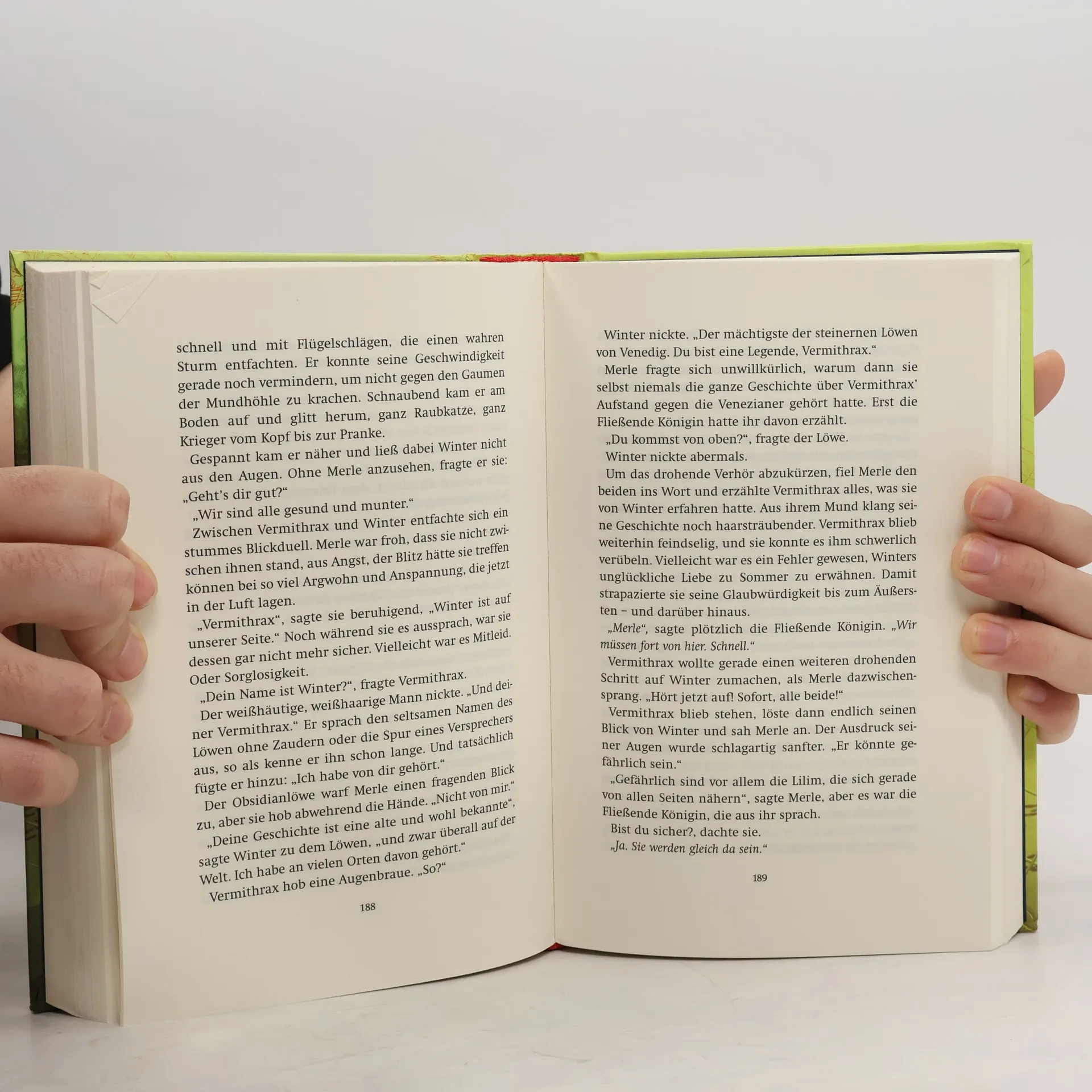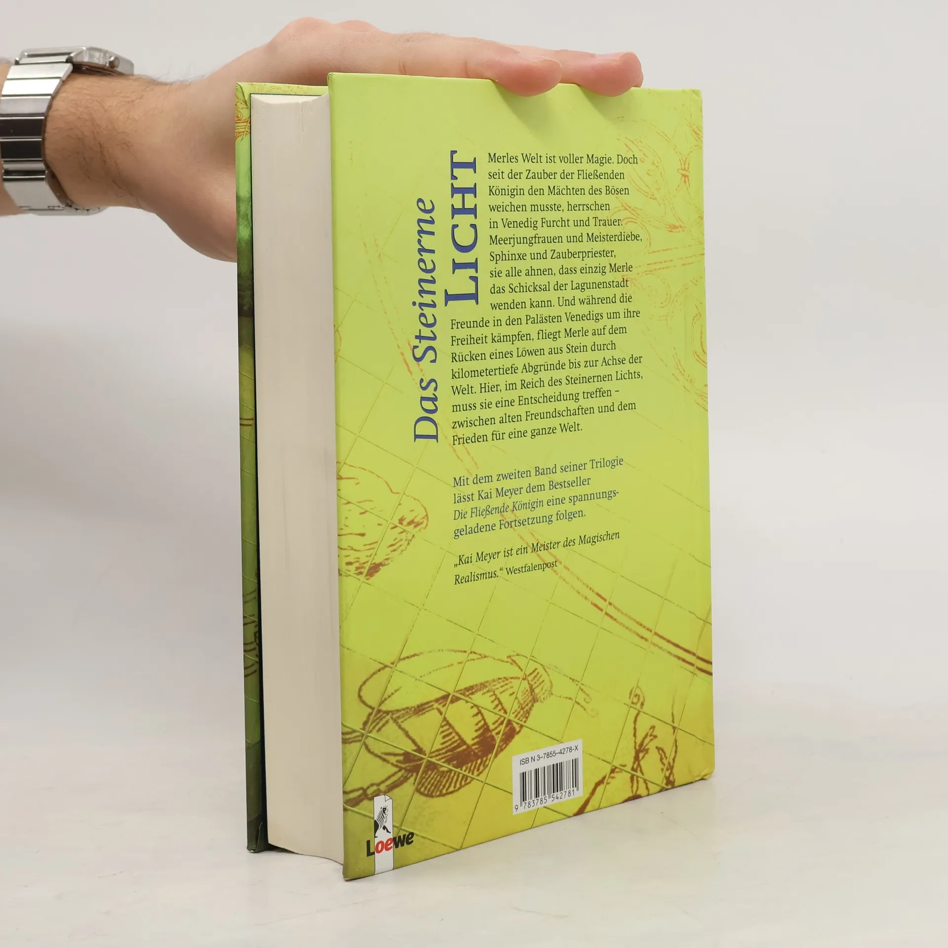 Merles Welt ist voller Magie. Doch seit der Zauber der Fließenden Königin den Mächten des Bösen weichen musste, herrschen in Venedig Furcht und Trauer. Meerjungfrauen und Meisterdiebe, Sphinxe und Zauberpriester, sie alle ahnen, dass einzig Merle das Schicksal der Lagunenstadt wenden kann. Und während die Freunde in den Palästen Venedigs um ihre Freiheit kämpfen, fliegt Merle auf dem Rücken eines Löwen aus Stein durch kilometertiefe Abgründe bis zur Achse der Welt. Hier, im Reich des Steinernen Lichtes, muss sie eine Entscheidung treffen. Eine Entscheidung, die alle Freundschaft verrät.