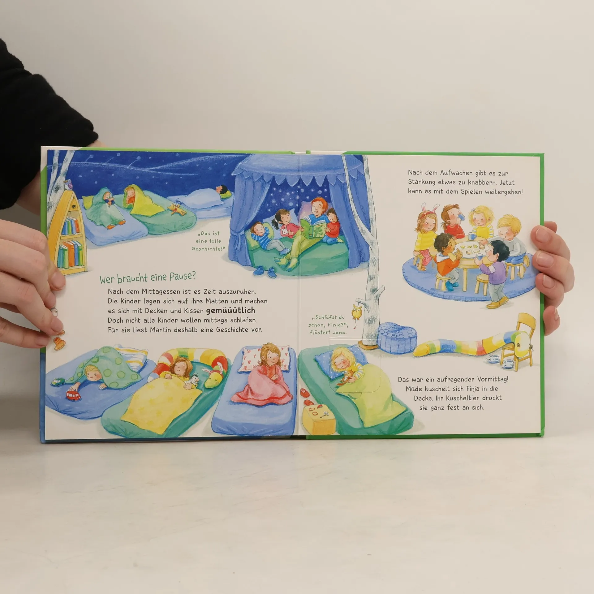 Für Finja ist heute ein ganz besonderer Tag: Ihre Zeit im Kindergarten beginnt! Neugierig, aufgeregt und gleichzeitig ein bisschen ängstlich läuft sie an Mamas Hand Richtung Eingangstüre. Die Erzieherin begrüßt sie freundlich und zeigt ihr die Gruppenräume. Mit Singen, Basteln, Turnen, einer gemütlichen Pause und dem Spielen mit ihren neuen Freunden im Garten vergeht der Tag so schnell, dass Finja fast enttäuscht ist, als Mama sie wieder abholen kommt. Durch farbenfrohe, witzige Illustrationen des typischen Kindergartenalltags und kurze Texte gibt das Buch Anreize zum Gespräch zwischen Kindern und Eltern – in einer Zeit, die für die ganze Familie einen neuen Lebensabschnitt darstellt! WAS IST WAS Meine Welt – die neue Sachbuchreihe mitten aus dem Leben.