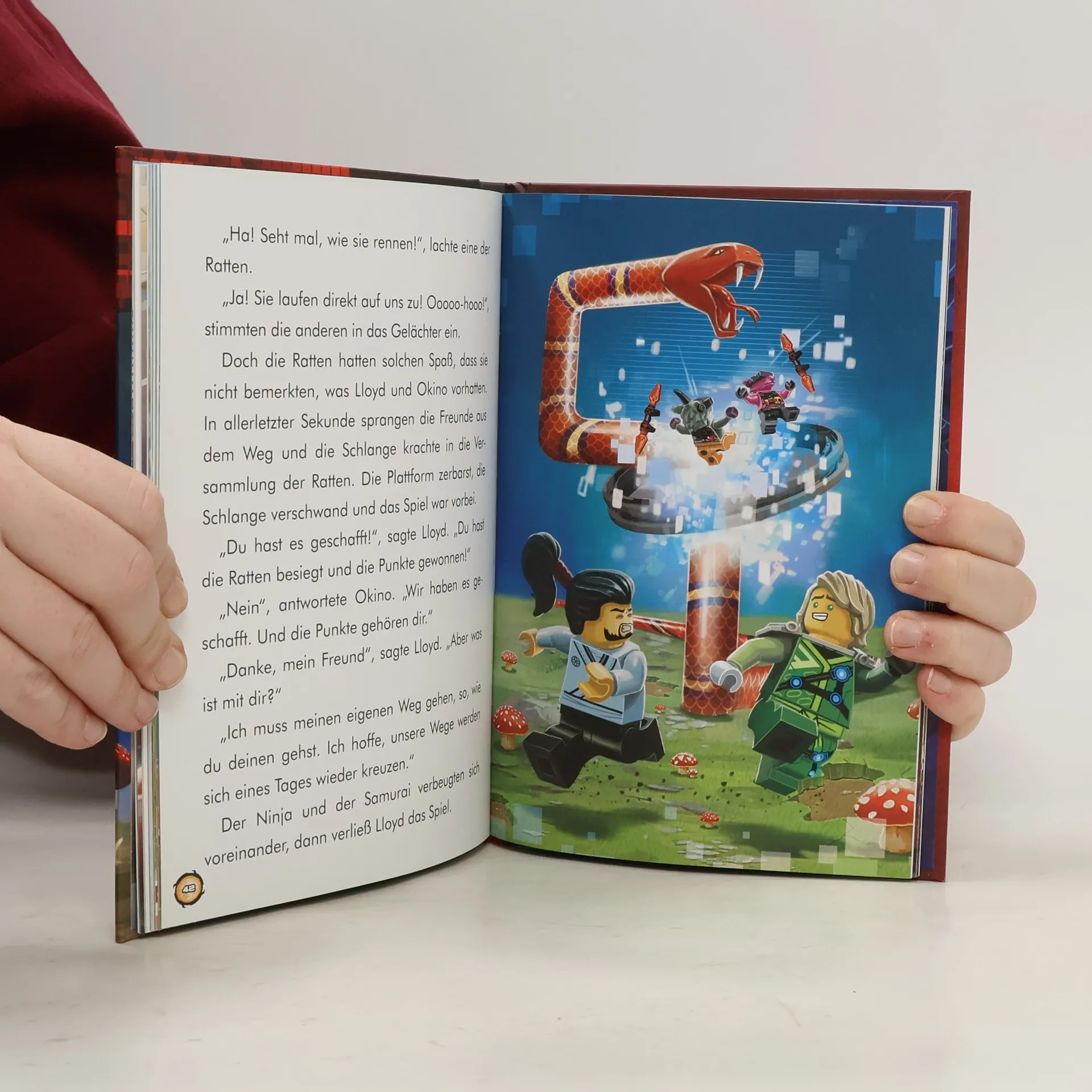 Die Ninja sind los! Neue Abenteuer aus der Welt der Ninjago City Helden! Die sechs mutigen Ninja Lloyd, Cole, Kai, Jay, Zane und Nya müssen die Bürger von Ninjago City wieder vor bösen Mächten beschützen. Merkwürdige und unentdeckte Welten sowie dunkle Geheimnisse warten auf die beliebten Helden. Werden die Helden von Ninjago City auch diesmal alle Missionen meistern und die Pläne ihrer Gegner durchkreuzen können? Das Lesebuch mit einer spannenden Einführung und einem Glossar der Helden von Ninjago City ist nicht nur für langjährige LEGO® NINJAGO® Fans, sondern auch für Einsteiger spannend. Drei abgeschlossene Geschichten und farbig illustrierte Seiten machen es Kindern leicht, das Geschehen zu verfolgen und sich zusammen mit den Ninja gegen die neuen Gegner zu stellen. Das Buch eignet sich hervorragend für Kinder ab 6 Jahren zum Vor- und Selberlesen. LEGO, the LEGO logo, the Brick and Knob configurations, the Minifigure and NINJAGO are trademarks of the LEGO Group. ©2020 The LEGO Group. Produced by AMEET Sp. z o. o. under license from the LEGO Group