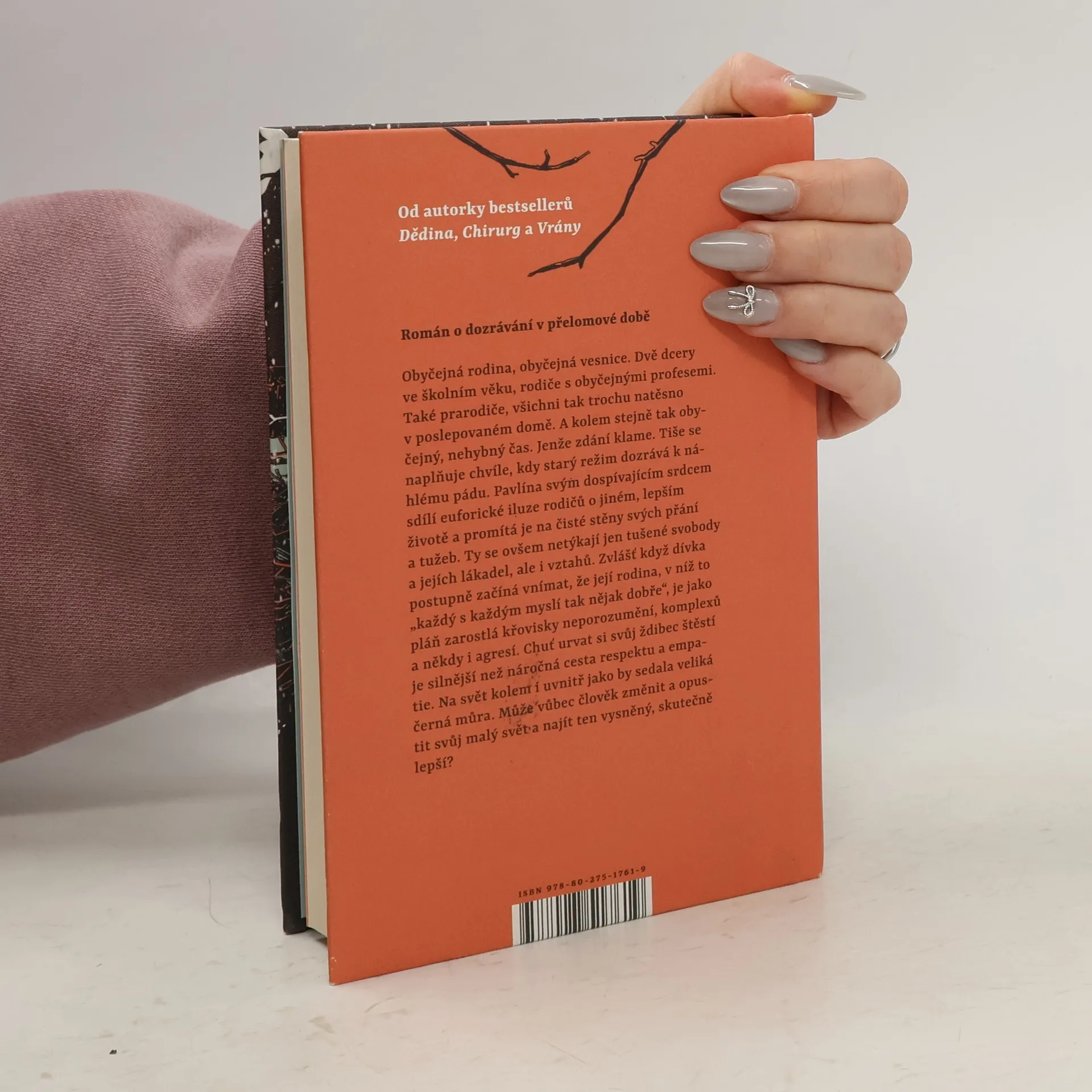 Román o dozrávání v přelomové době.Obyčejná rodina, obyčejná vesnice. Dvě dcery ve školním věku, rodiče s obyčejnými profesemi. Také prarodiče, všichni tak trochu natěsno v poslepovaném, ale jinak úplně obyčejném domě. A kolem stejně tak obyčejný, nehybný čas. Jenže zdání tu klame. Tiše se naplňuje chvíle, kdy starý režim dozrává k náhlému rozpadu. Pavlína, ústřední vypravěčka této vícehlasé prózy, svým dětským srdcem sdílí euforické iluze rodičů o jiném, lepším životě a promítá je na čisté stěny svých tajných přání a tužeb. Ty se ovšem netýkají jen tušené svobody a jejích lákadel, ale i vztahů. Zvlášť když dívka postupně začíná vnímat, že její rodina, v níž to „každý s každým myslí tak nějak dobře“, je jako pláň zarostlá křovisky neporozumění, komplexů a někdy i agresí. Chuť urvat si svůj ždibec štěstí a z toho plynoucí pokušení vykonávat moc je silnější než náročná cesta respektu a empatie. Na svět kolem i uvnitř jako by sedala veliká černá můra. Pavlína už dávno není školačka, ale pořád se jí nedaří vstoupit do dospělého života bez neustálého klopýtání. Může vůbec člověk změnit a opustit svůj malý svět? Zmizí snad tíha s milosrdnou tmou? Anebo naopak s příchodem nějaké větší záře?