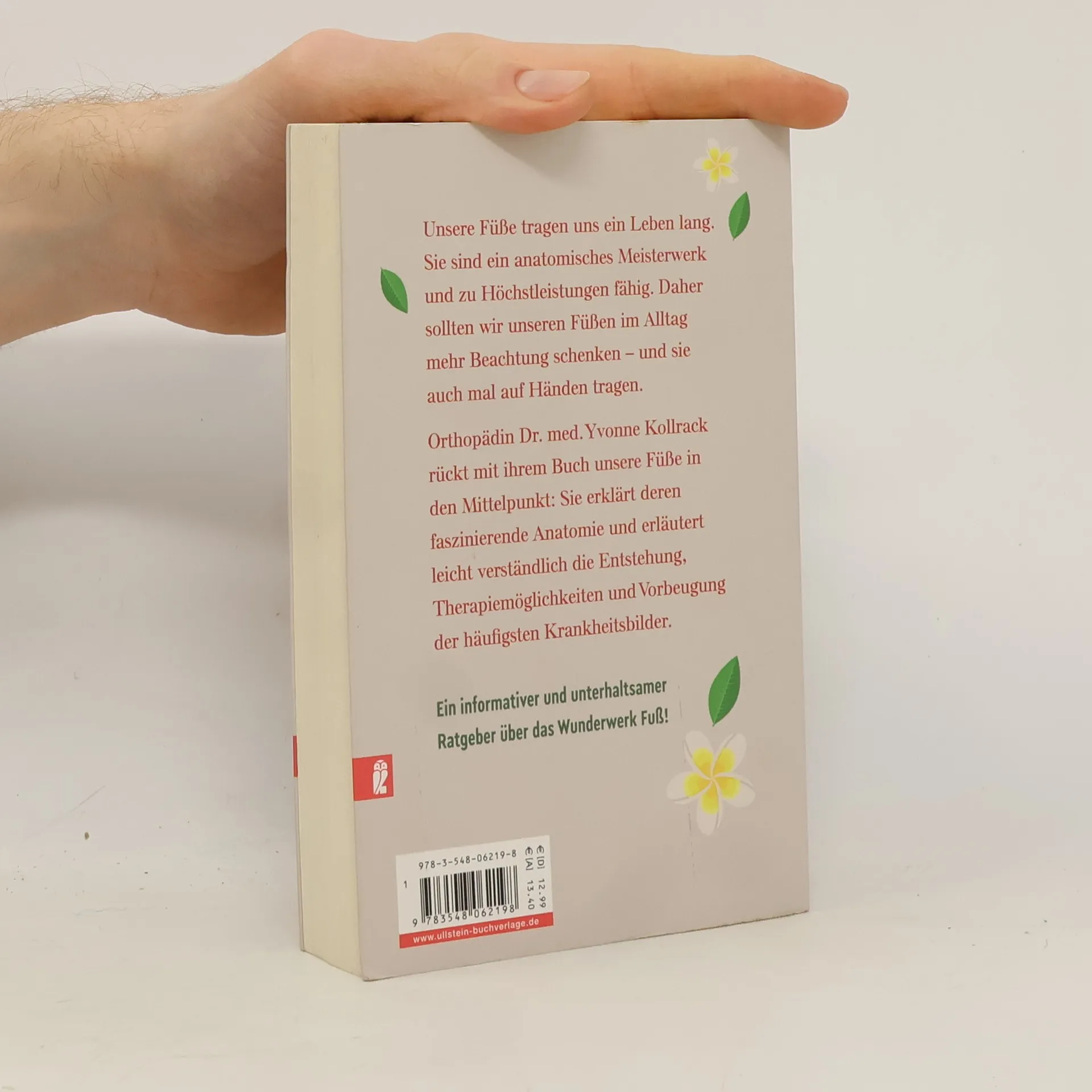 Unsere Füße tragen uns ein Leben lang, Tag für Tag. Sie sind ein anatomisches Meisterwerk und zu Höchstleistungen fähig. Doch wenn unsere Füße nicht einwandfrei funktionieren, wirken sich schon kleinste Störungen massiv auf unser Wohlbefinden aus. Daher sollten wir unseren Füßen im Alltag mehr Beachtung schenken - und sie auch mal auf Händen tragen. Orthopädin Dr. Yvonne Kollrack rückt mit ihrem Buch unsere Füße in den Mittelpunkt. Sie erklärt ihre faszinierende Anatomie und erläutert leicht verständlich die Entstehung, Therapiemöglichkeiten und Vorbeugung der häufigsten Krankheitsbilder. Ein informativer und unterhaltsamer Ratgeber über das Wunderwerk Fuß!