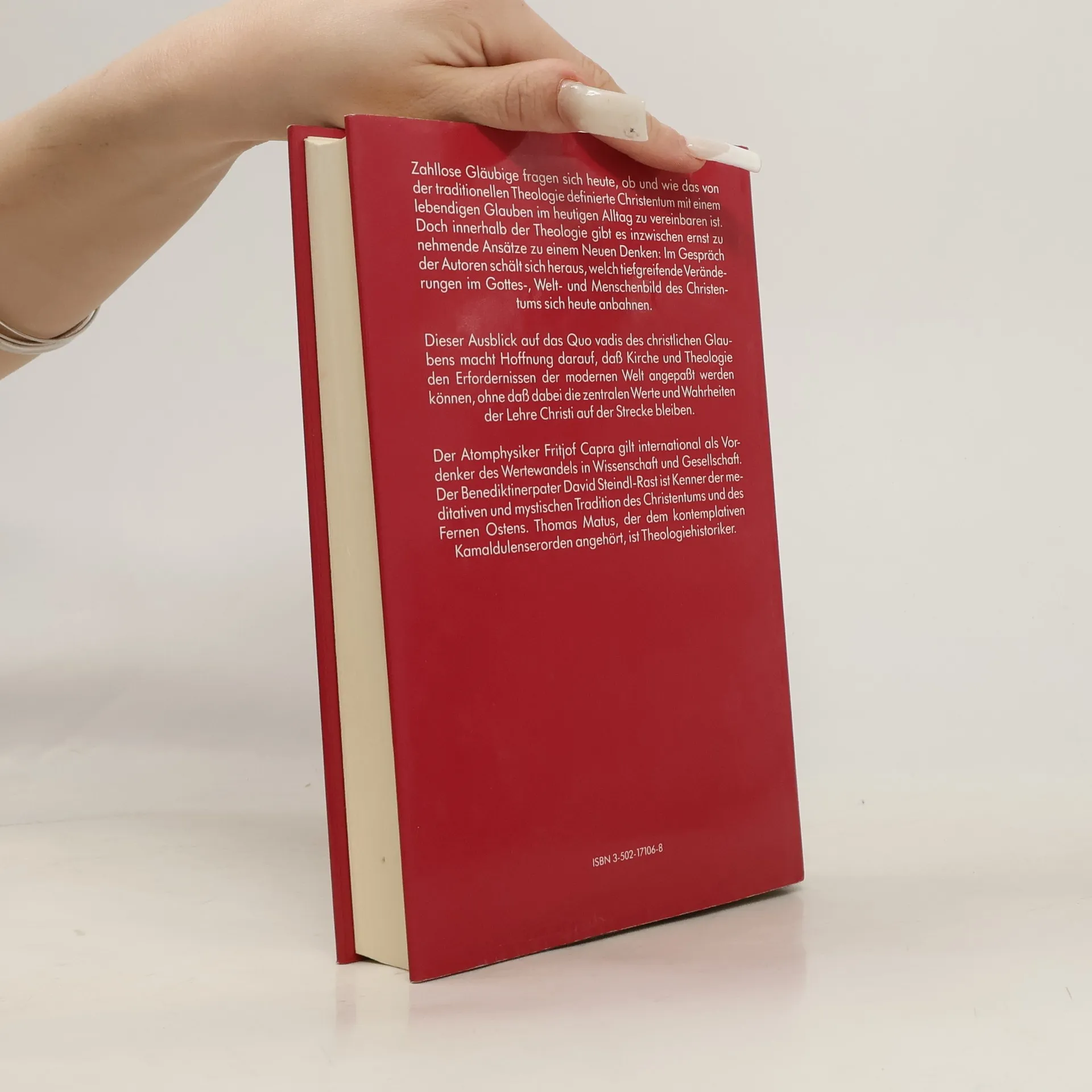 Fundamentalistische Tendenzen und das starre Festhalten an unzeitgemäßen Glaubenssätzen haben die christlichen Kirchen ins Kreuzfeuer der Kritik gebracht. Zahllose Gläubige fragen sich heute, ob und wie das von der traditionellen Theologie definierte Christentum mit einem lebendigen Glauben im heutigen Alltag zu vereinbaren ist. Doch wie die Autoren zeigen, gibt es innerhalb der Theologie ernst zu nehmende Ansätze zu einem ganzheitlich ökologisch orientierten Neuen Denken.Von grundlegenden theologischen Fragen wie dem Alleingültigkeitsanspruch über das patriarchale Denken und die Stellung der Frau in der Kirche bis zur weltweiten Ökumene und der Rolle des Menschen bei der Bewahrung der Schöpfung – das Gespräch zwischen dem Atomphysiker Fritjof Capra, dem Benediktinerpater David Steindl-Rast und dem Theologiehistoriker Thomas Matus vermittelt engagierten Christen richtungweisende Denkanstöße.(Dieser Text bezieht sich auf eine frühere Ausgabe.)