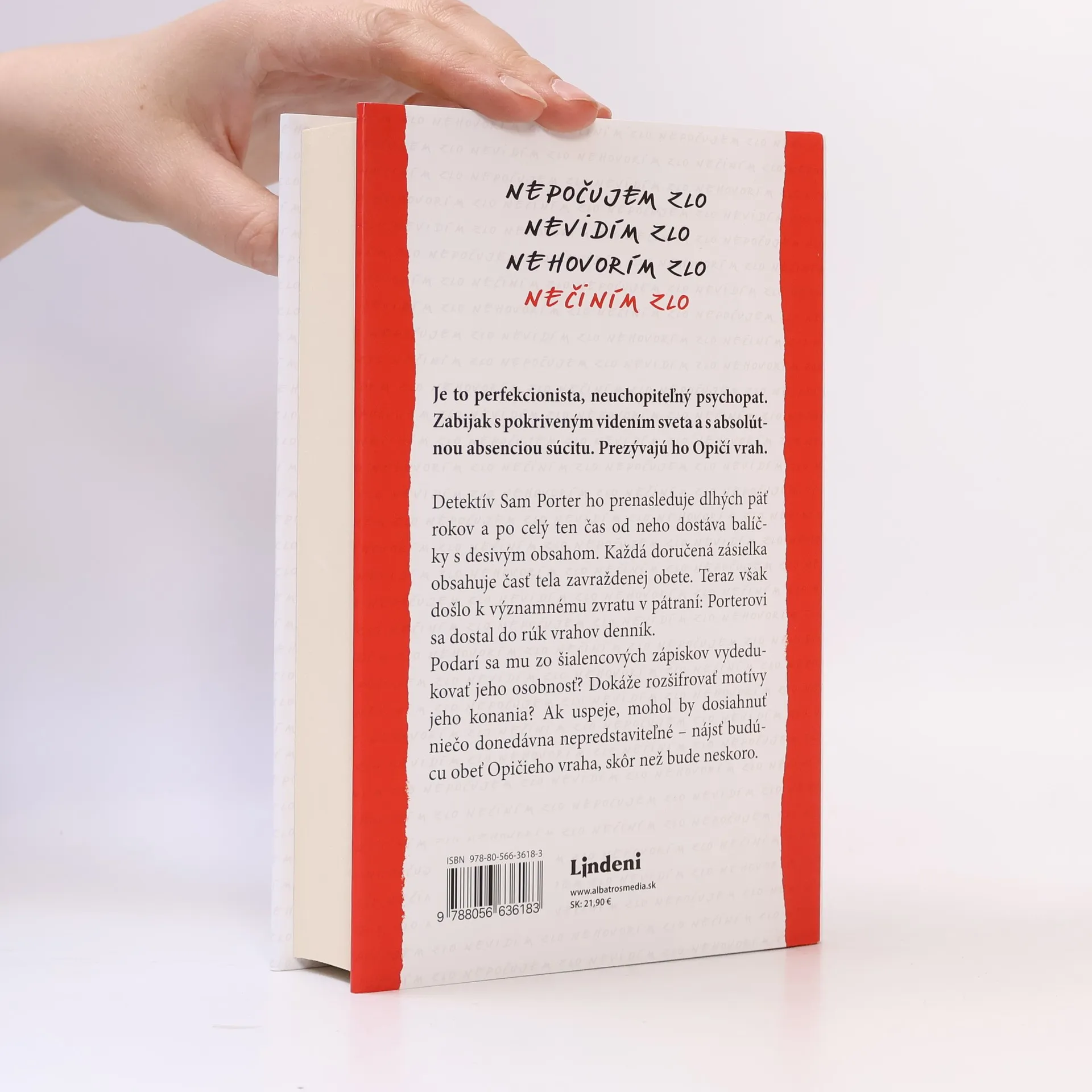 Je to zabijak s pokriveným videním sveta a s absolútnou absenciou súcitu. Detektív Sam Porter ho prenasleduje dlhých päť rokov a po celý ten čas od neho dostáva balíčky s desivým obsahom. Každá doručená zásielka obsahuje časť tela zavraždenej obete. Teraz však došlo k významnému zvratu v pátraní: Porterovi sa dostal do rúk vrahov denník. Podarí sa mu zo šialencových zápiskov vydedukovať jeho osobnosť?