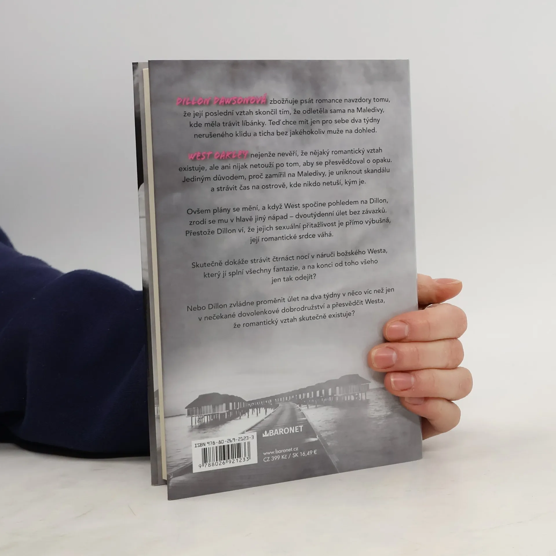 Dillon Dawsonová zbožňuje psát romance navzdory tomu, že její poslední vztah skončil tím, že odletěla sama na Maledivy, kde měla trávit líbánky. Teď chce mít jen pro sebe dva týdny nerušeného klidu a ticha bez jakéhokoliv muže na dohled.West Oakley nejenže nevěří, že nějaký romantický vztah existuje, ale ani nijak netouží po tom, aby se přesvědčoval o opaku. Jediným důvodem, proč zamířil na Maledivy, je uniknout skandálu a strávit čas na ostrově, kde nikdo netuší, kým je.Ovšem plány se mění, a když West spočine pohledem na Dillon, zrodí se mu v hlavě jiný nápad – dvoutýdenní úlet bez závazků. Přestože Dillon ví, že jejich sexuální přitažlivost je přímo výbušná, její romantické srdce váhá.Skutečně dokáže strávit čtrnáct nocí v náruči božského Westa, který jí splní všechny fantazie, a na konci od toho všeho jen tak odejít?Nebo Dillon zvládne proměnit úlet na dva týdny v něco víc, než jen nečekané dovolenkové dobrodružství, a přesvědčit Westa, že romantický vztah skutečně existuje?