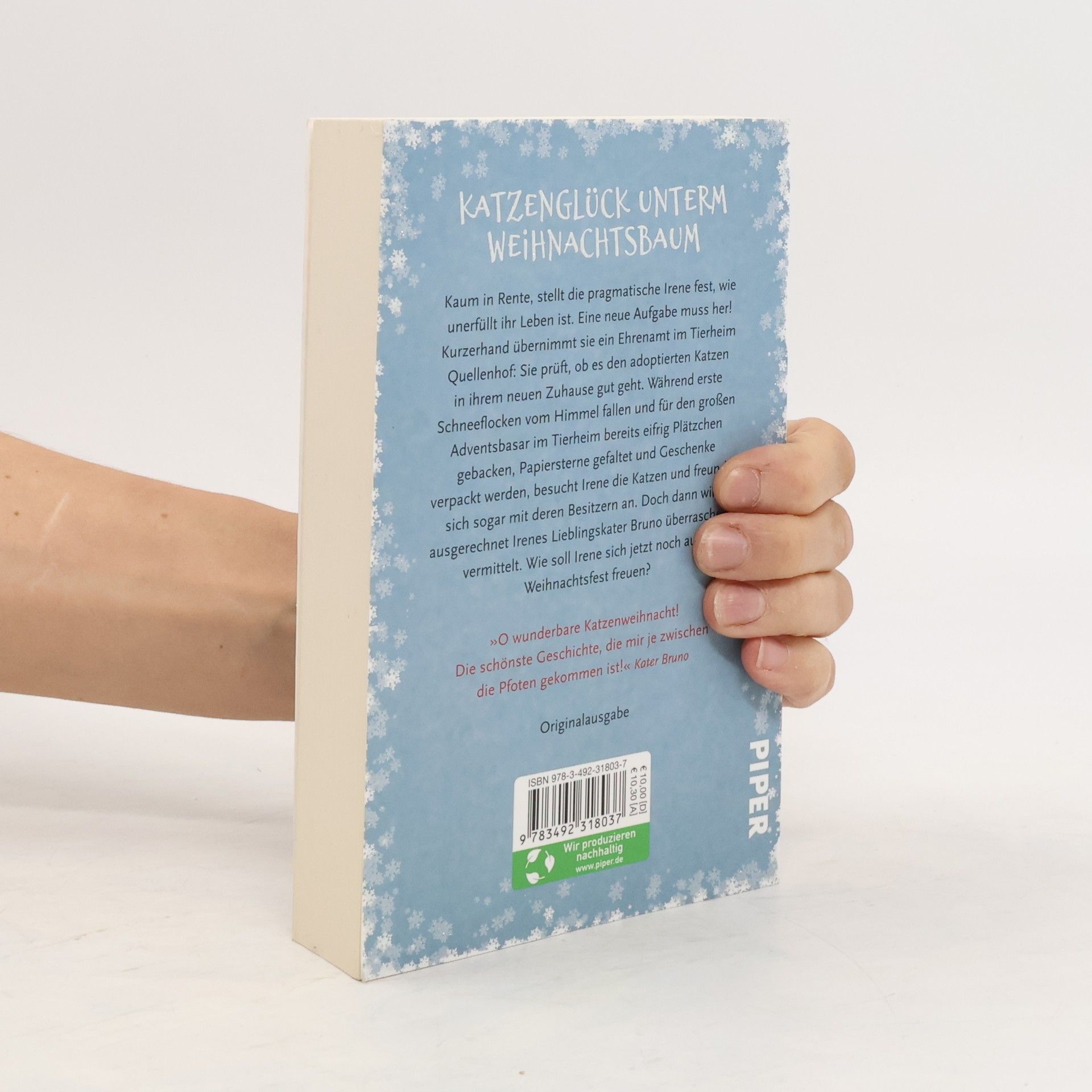 Katzenglück unterm Weihnachtsbaum Kaum ist die pragmatische Irene in Rente, stellt sie fest, dass ihr Leben unerfüllt ist. Kurzerhand übernimmt sie ein Ehrenamt im Tierheim Quellenhof: Sie prüft, ob es den adoptierten Katzen in ihrem neuen Zuhause gut geht. Während erste Schneeflocken vom Himmel fallen und sich das Tierheim auf den großen Adventsbasar vorbereitet, besucht sie die Katzen und lernt deren Besitzer kennen. Doch als ihr Lieblingskater Bruno vermittelt wird, ist Irene untröstlich … wie gut, dass im Tierheim alle zusammenhalten und Irene schließlich ein ganz besonderes Weihnachtsfest bescheren … Ein wunderbar weihnachtlicher Katzenroman von der Autorin von »Auf Samtpfoten zum Glück« und ein perfektes Weihnachtsgeschenk für alle Katzen-Fans!