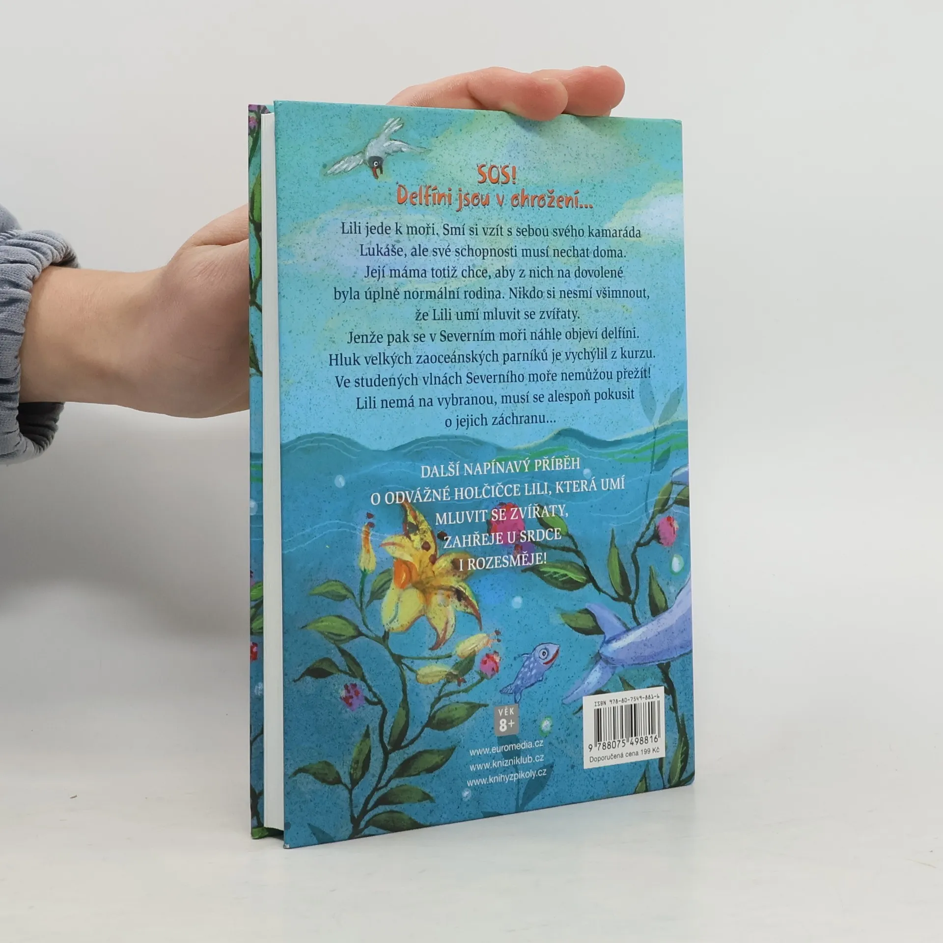 Lili jede k moři. Smí si vzít sebou svého kamaráda Lukáše, ale své schopnosti musí nechat doma. Její máma totiž chce, aby z nich na dovolené byla úplně normální rodina. Nikdo si nesmí všimnout, že Lili umí mluvit se zvířaty. Jenže pak se v Severním moři náhle objeví delfíni. Hluk velkých zaoceánských parníků je vychýlil z kurzu. Ve studených vlnách Severního moře nemůžou přežít! Lili nemá na vybranou, musí se alespoň pokusit o jejich záchranu… Další napínavý příběh z oblíbené série o odvážné Lili zahřeje u srdce i rozesměje! Kniha je určena pro čtenářky od 8 let.
